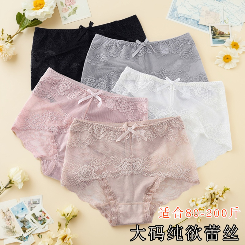 内裤女蕾丝中腰性感三角大码胖mm200斤无痕火辣超薄网纱镂空夏季