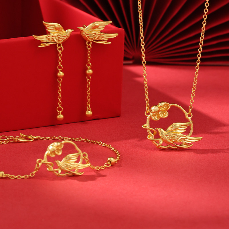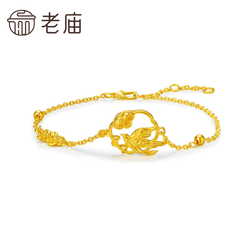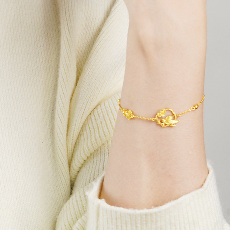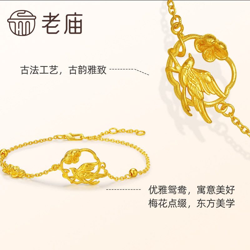 老庙黄金足金鸳鸯手链古法古韵雅致璀璨吸睛鸳鸯寓意甜蜜良缘气质
