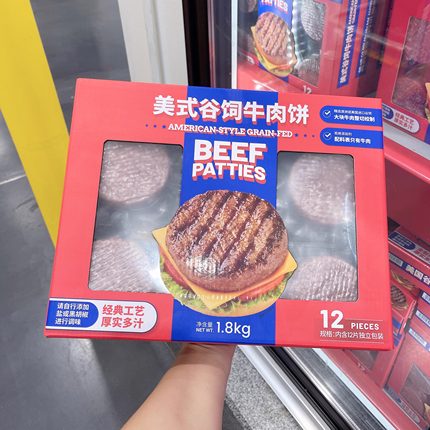 美国谷饲牛肉饼1.8kg(12片)肉饼汉堡食材 南京山姆代购顺丰配送