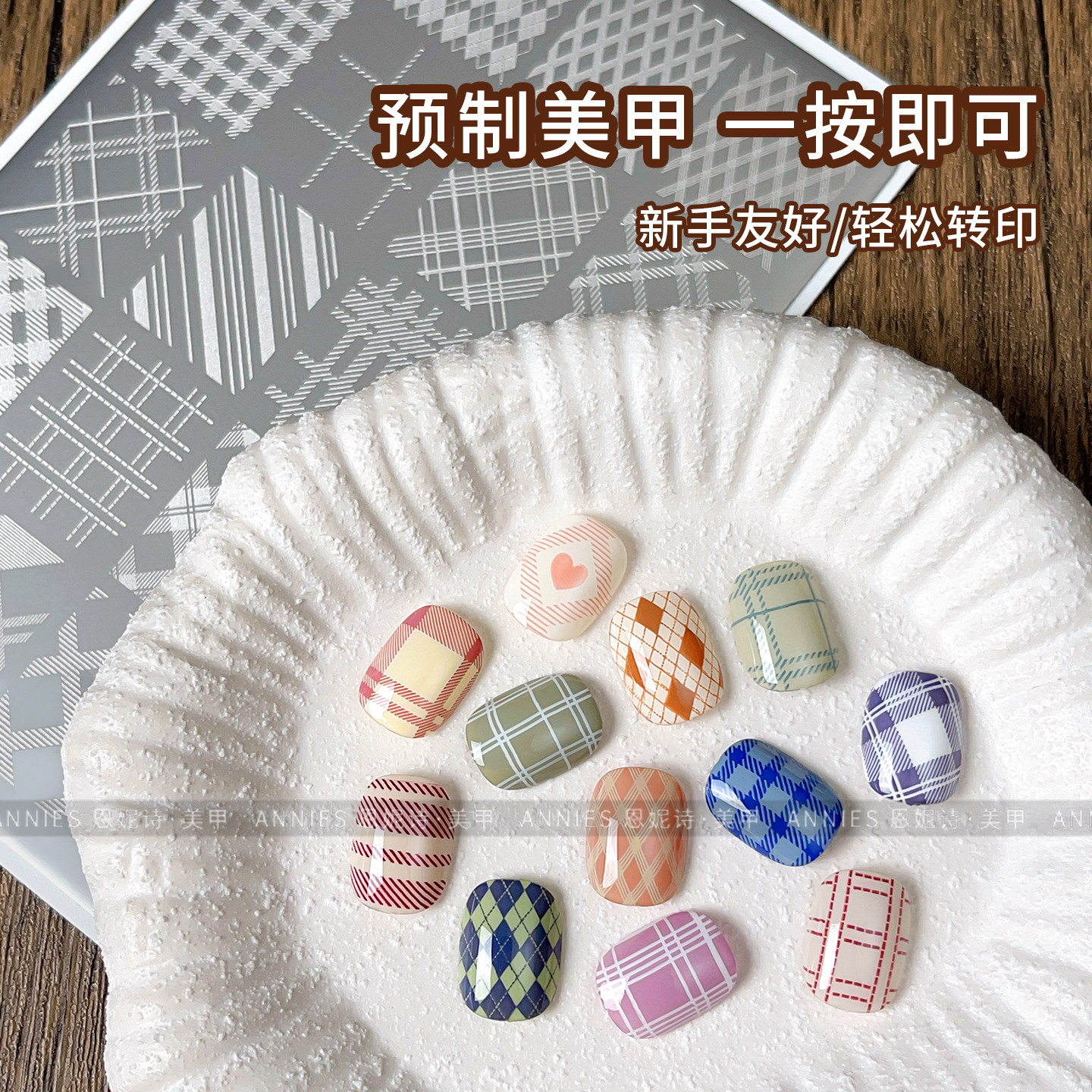 美甲专用印花钢板新款格纹法式线条模板硅胶印章精美图案转印工具
