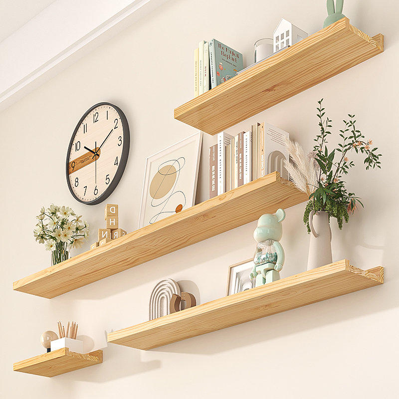 创意实木墙面墙上置物架一字隔板书架装饰架子客厅置物板壁挂悬空