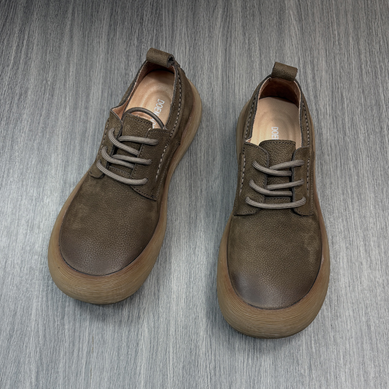 复古手工真皮大头皮鞋男款软皮休闲鞋透气英伦潮流防滑牛筋底男鞋