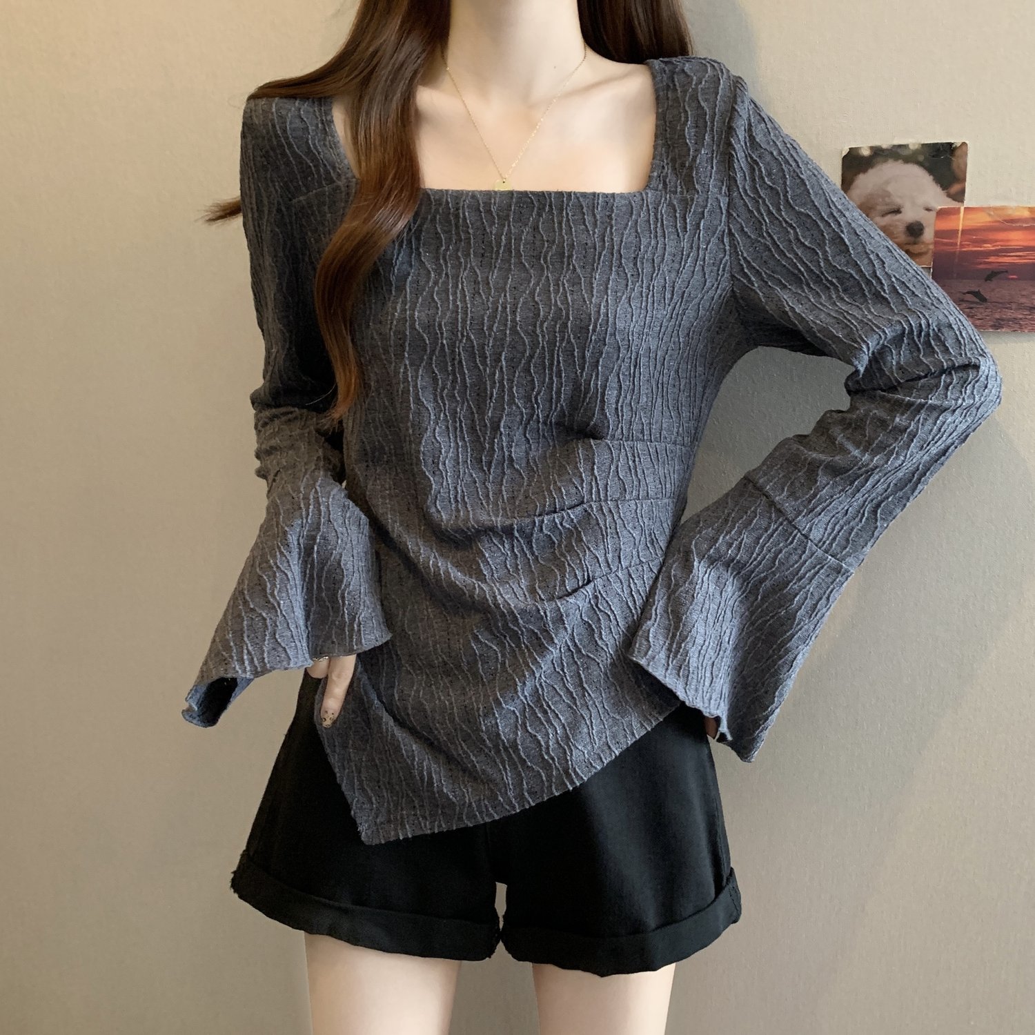 300斤大码女装胖mm设计感长袖t恤秋冬季新款打底衫显瘦遮肚子上衣