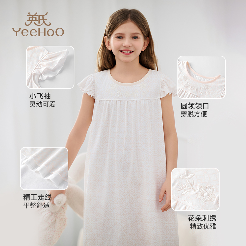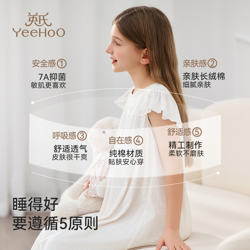 英氏女童儿童睡裙夏100%纯棉