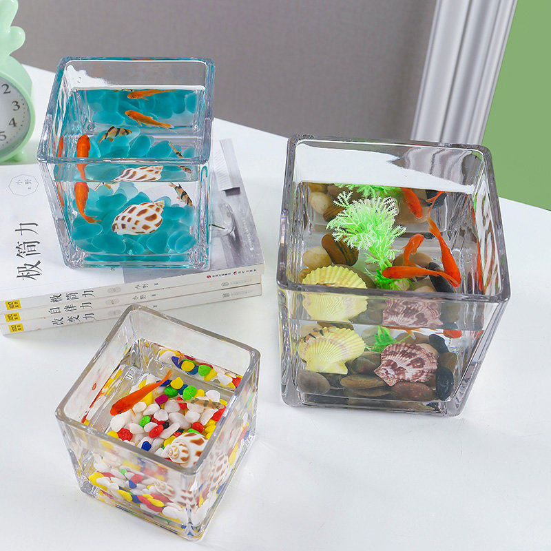 小鱼缸水族箱客厅小型桌面创意家用水晶玻璃生态迷你金鱼缸方形