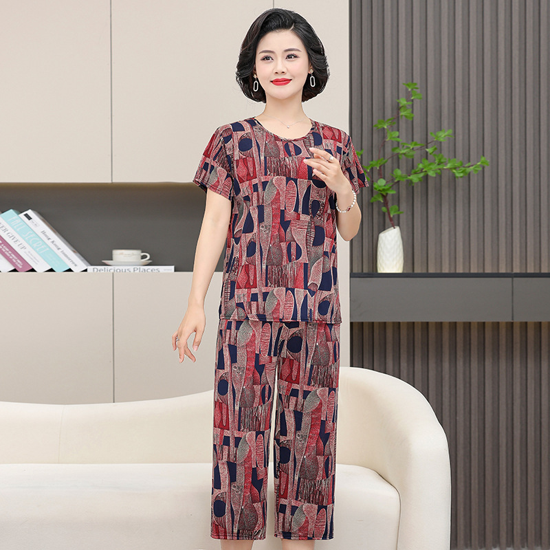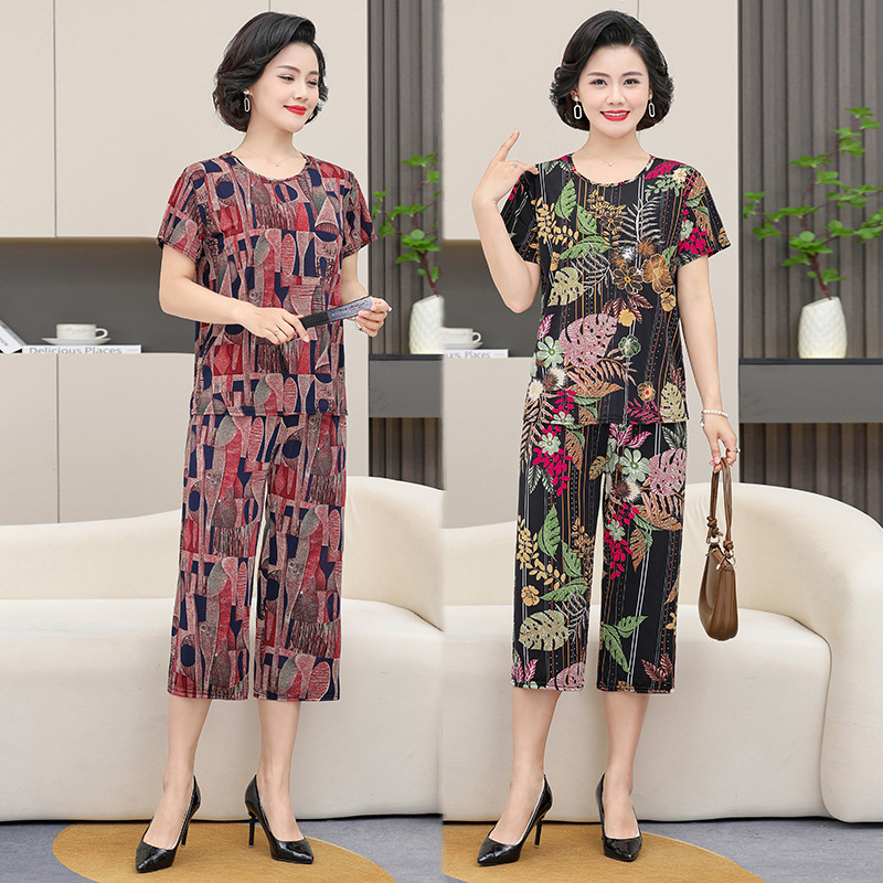 中老年妈妈装两件套装中年妇女装短袖T恤中老年奶奶洋气套装