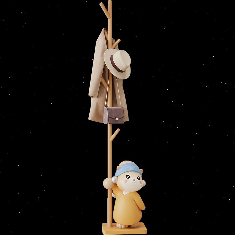 落地挂衣架晚轻奢木卧室上儿童床边神器猫咪衣服入户放网红衣帽架