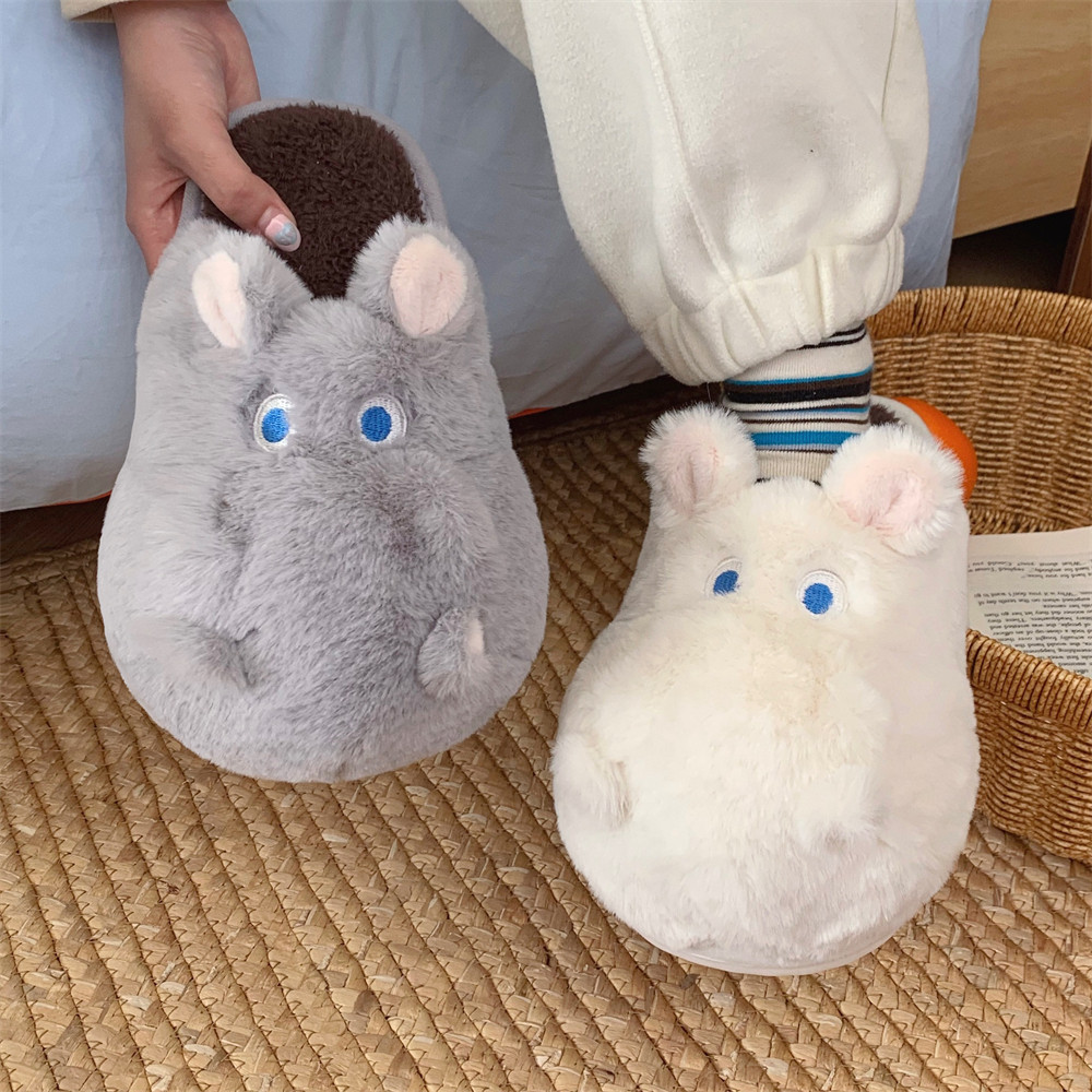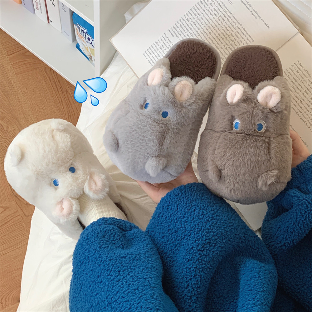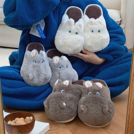 细细条 毛绒绒可爱河马情侣棉拖鞋冬季保暖防滑男女士时尚家居鞋