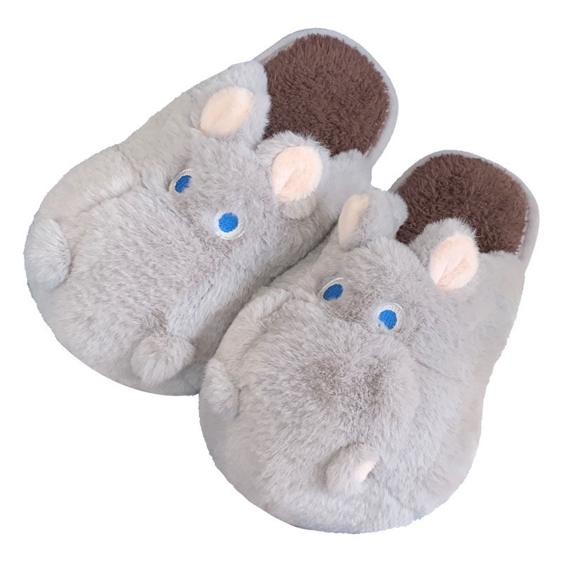 细细条可爱河马情侣毛绒棉拖鞋