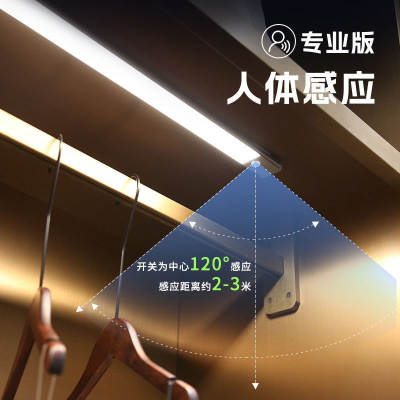 人体感应灯带无线自粘免插电led酒柜衣柜灯展柜磁吸充电橱柜灯条
