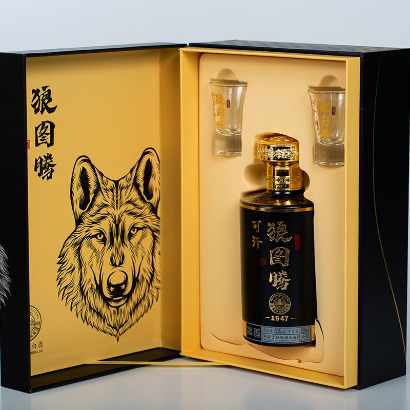 内蒙纯粮食白酒可汗狼图腾53度500ml高度清香型国产白酒高档盒装