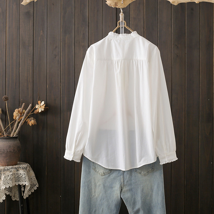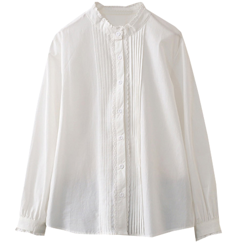 春秋大码200斤文艺范风琴折皱长袖纯棉衬衫百搭衬衣打底衫上衣潮