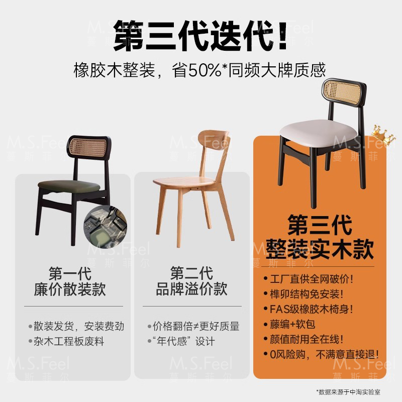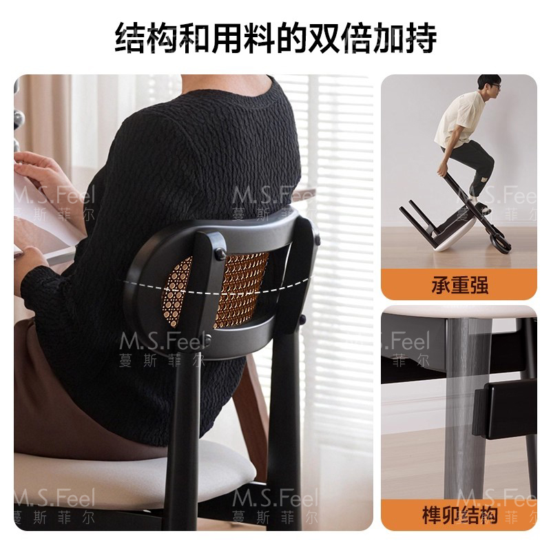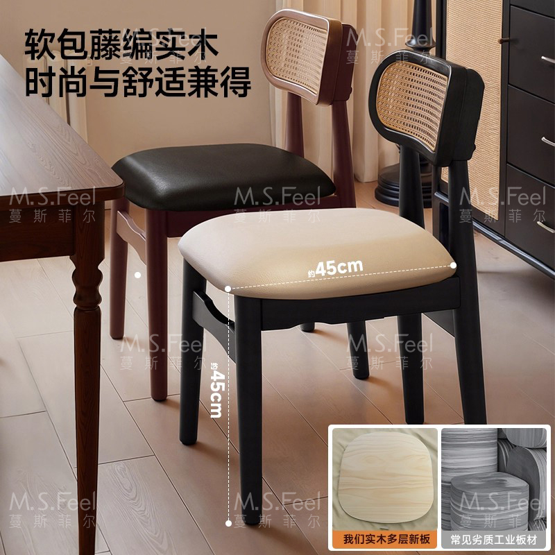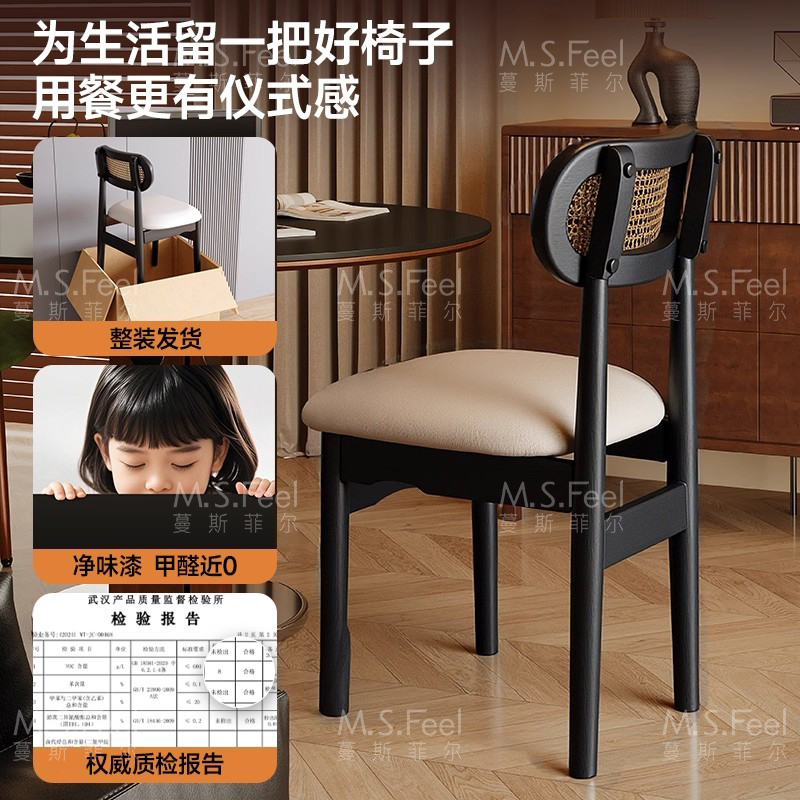 餐椅中古风法式复古椅子实木藤编靠背椅餐桌久坐商用家用餐厅凳子
