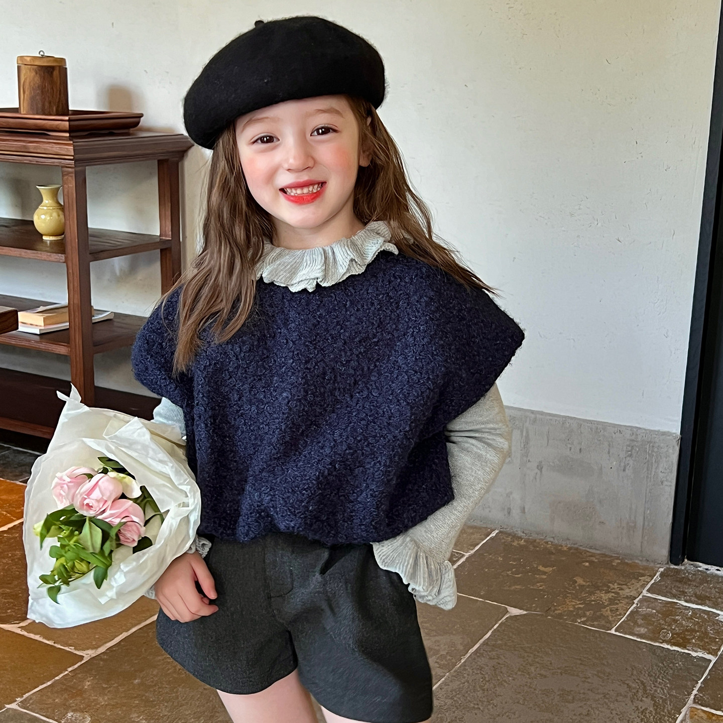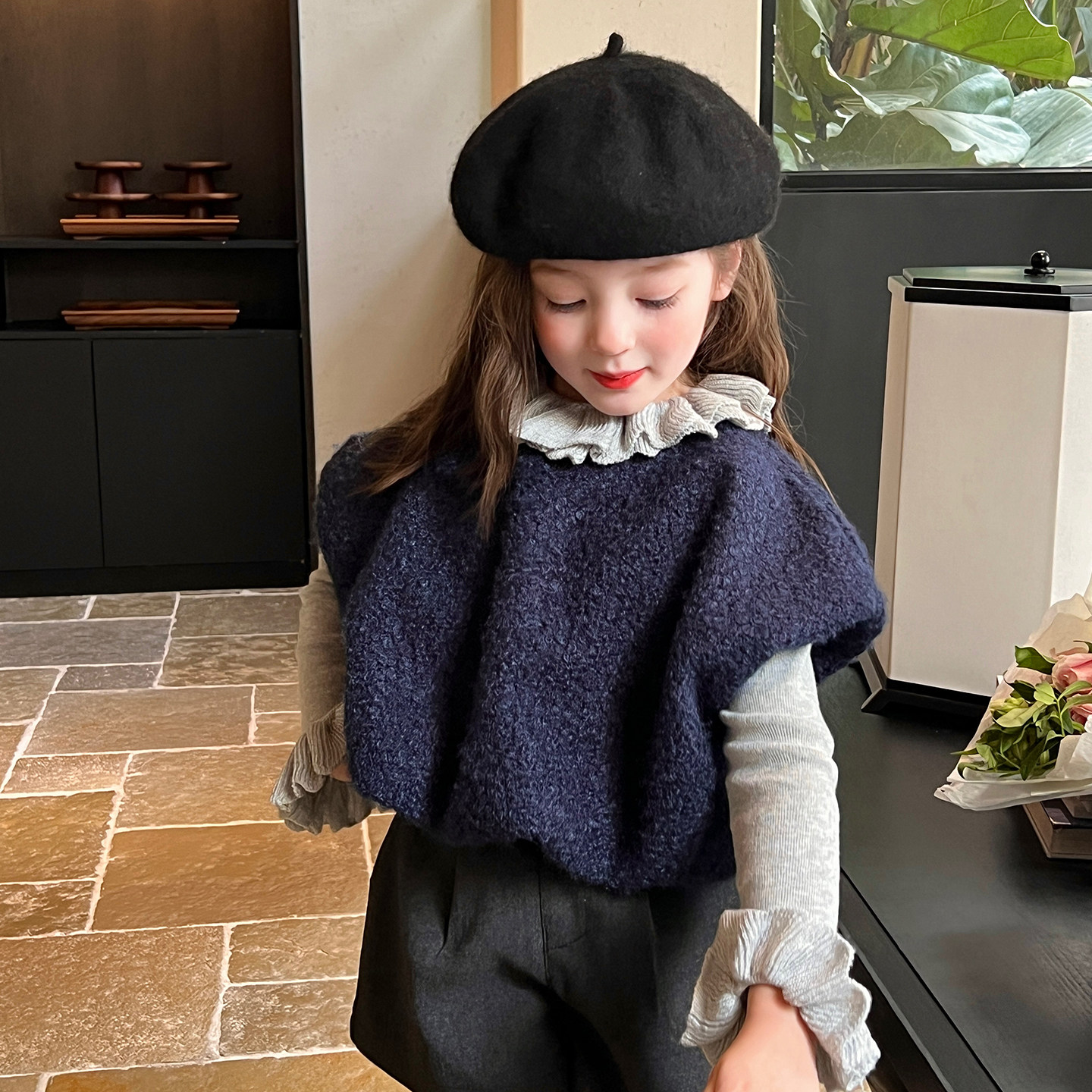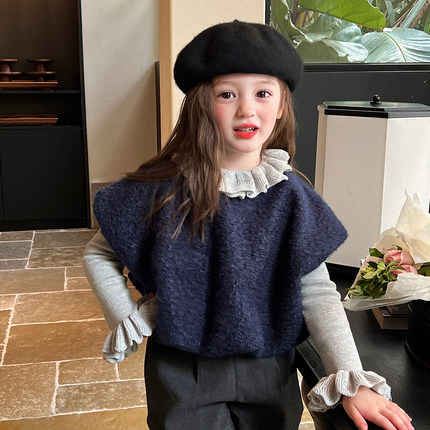 栀了成长记女童装法式百搭毛呢马甲秋季儿童宝宝时髦宽松毛衣背心