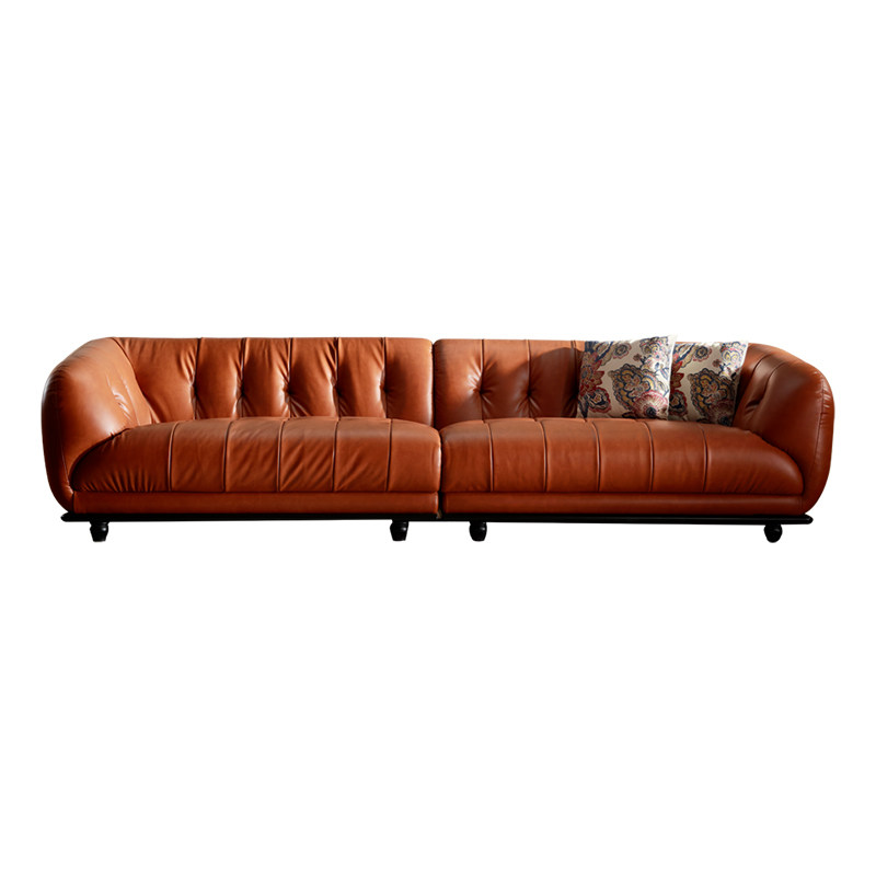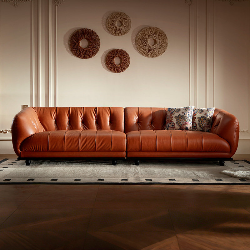 复古头层牛皮三人位软包沙发