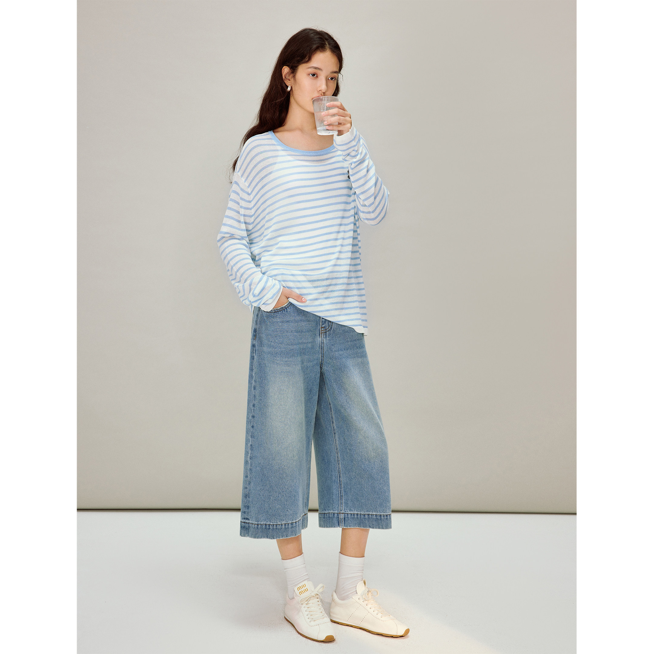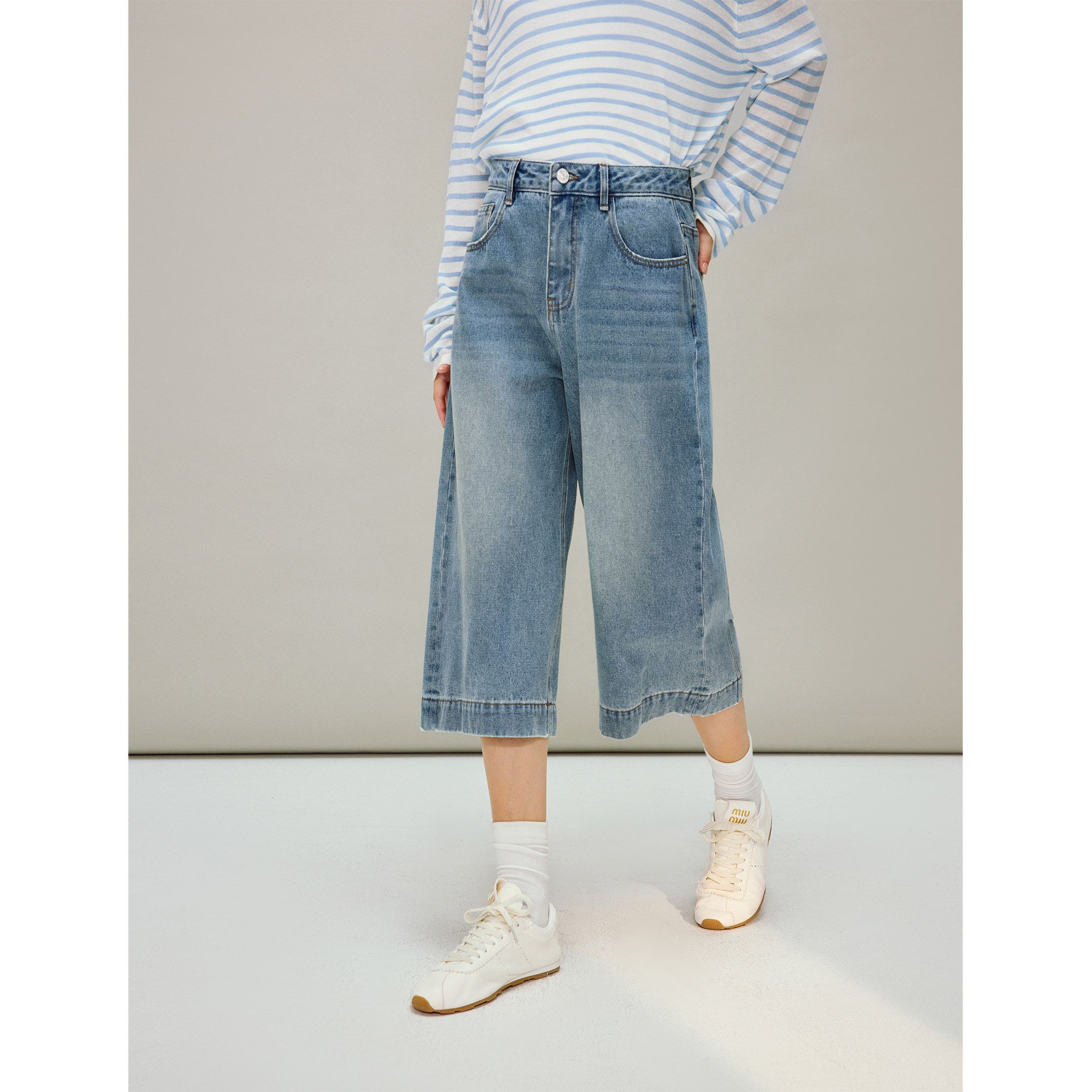 茵曼100棉七分阔腿牛仔裤2026春季女装新款休闲百搭显瘦宽松裤子