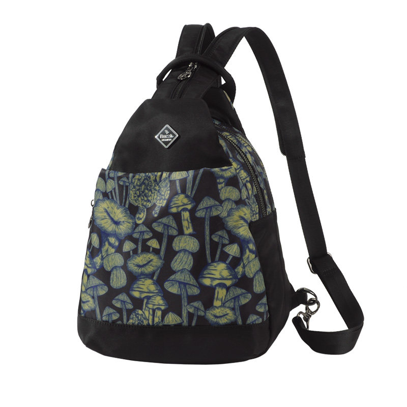 法姿小双肩背包尼龙女2025新品时尚个性背包韩版印花帆布运动胸包