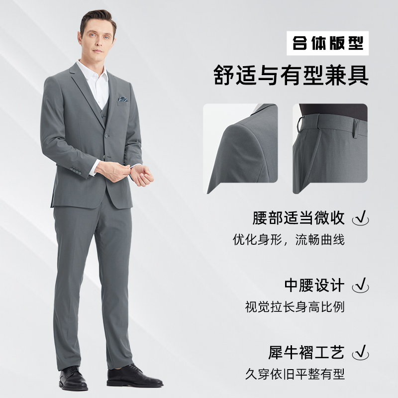 杉杉男士西装男套装高级感西服正装结婚礼服新郎婚礼三件套马甲