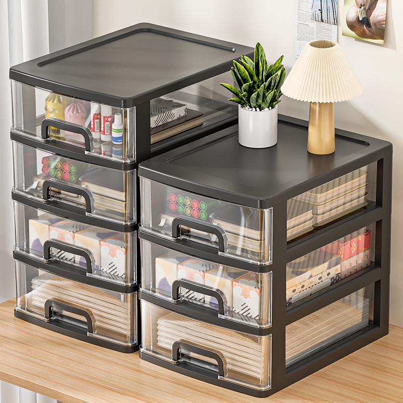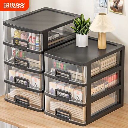 桌面文具收纳盒家用抽屉式大容量多层化妆品置物架透明杂物整理盒