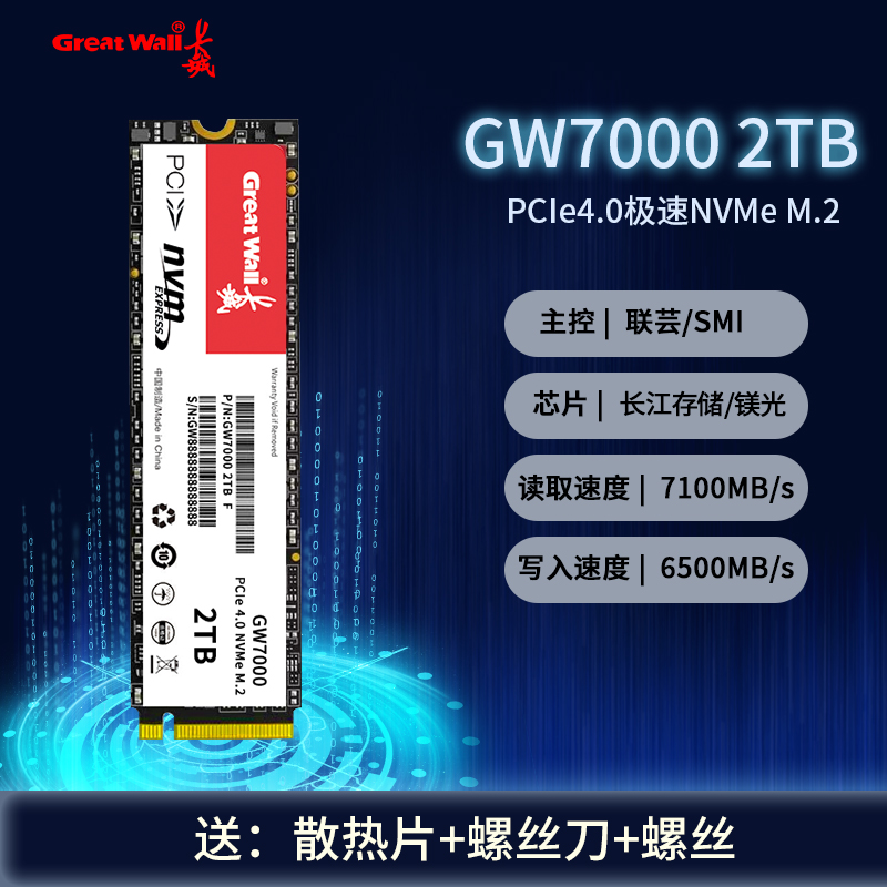 长城GW5000带缓存2TB固态硬盘1TB台式机笔记本M.2硬盘PCle4.0NVME