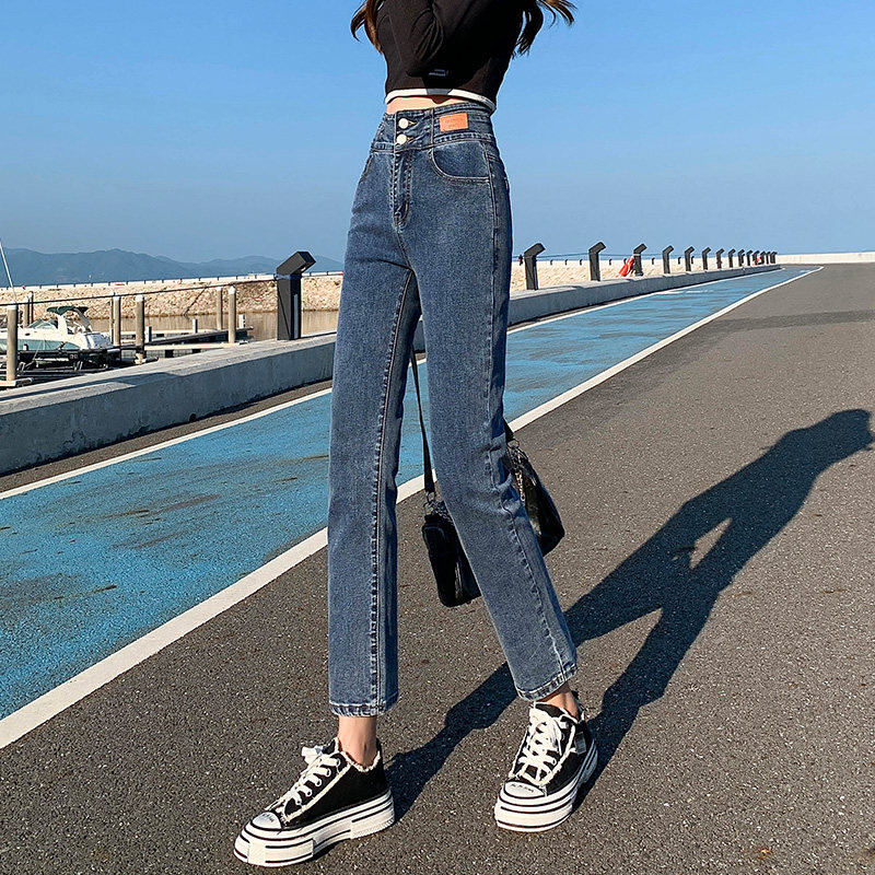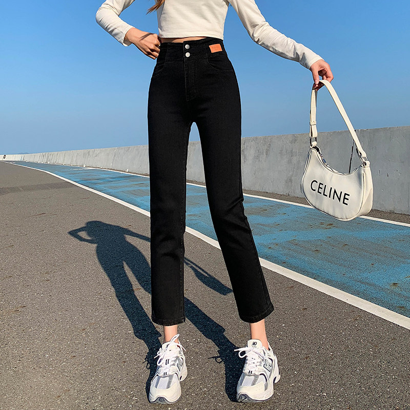 烟管牛仔裤女夏九分高腰