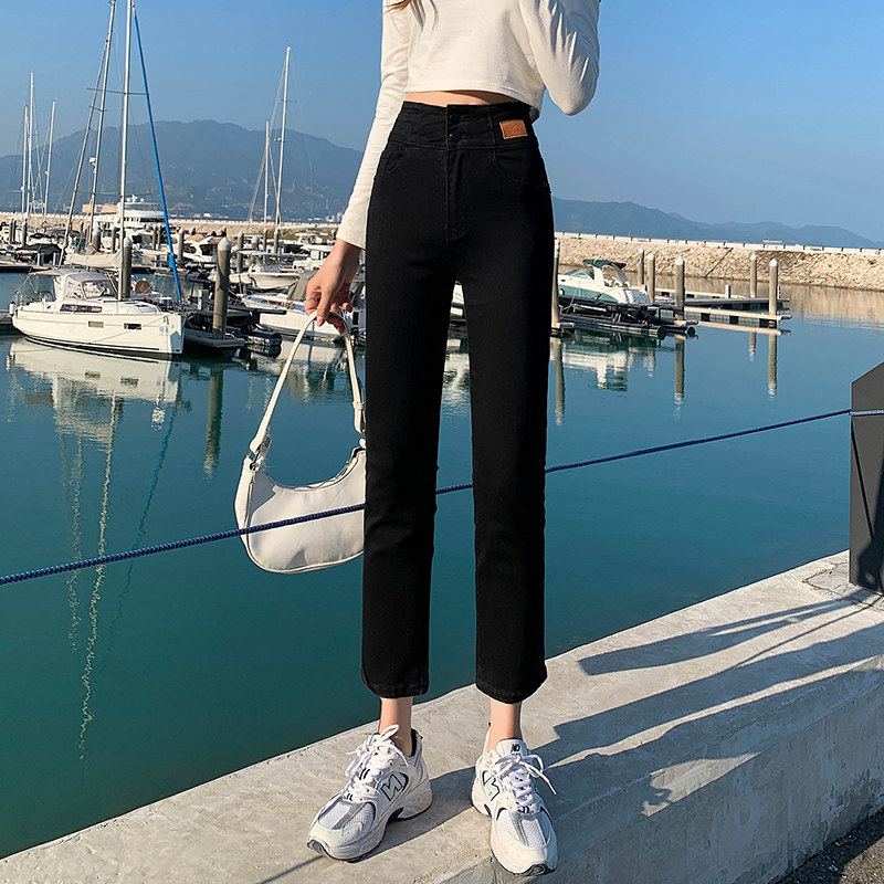 小个子烟管牛仔裤女夏天薄款2022年新款高腰显瘦黑色九分直筒裤子