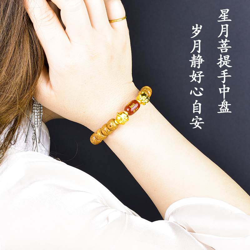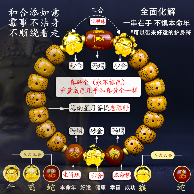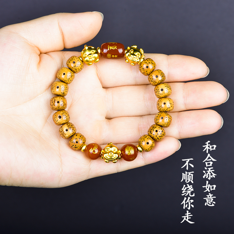 海南星月菩提老陈籽三合六合手串顺白高密本命年生肖护身符手链