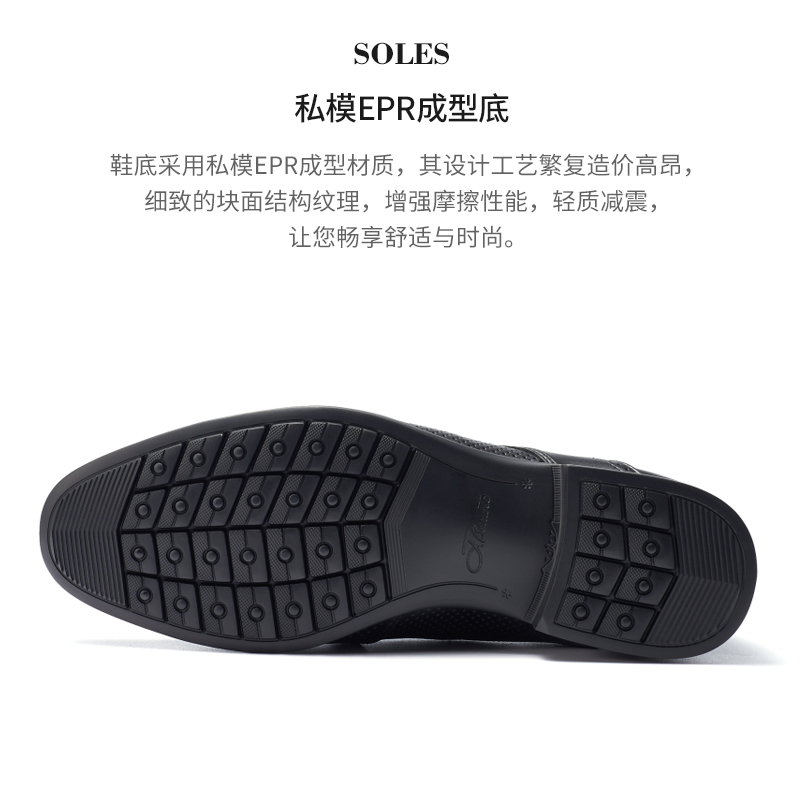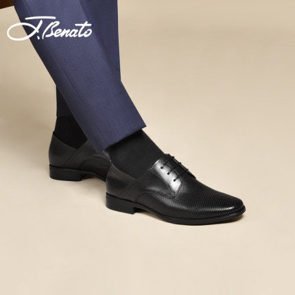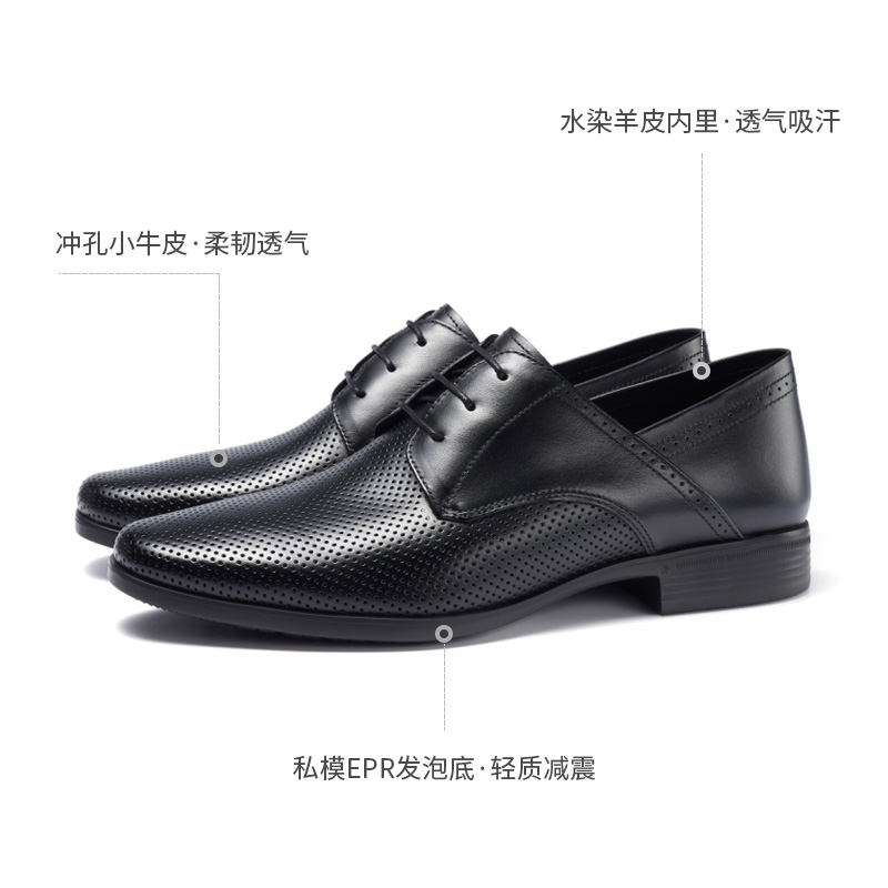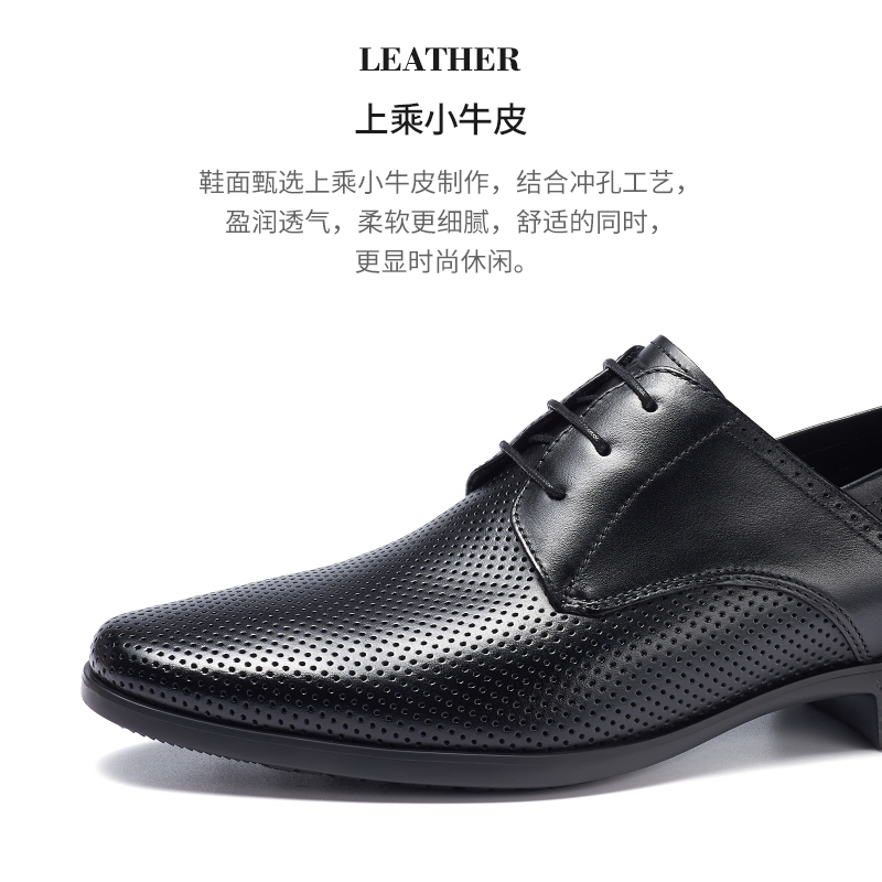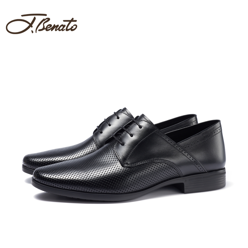 jbenato宾度男鞋夏季男士商务正装皮鞋男真皮透气舒适圆头镂空