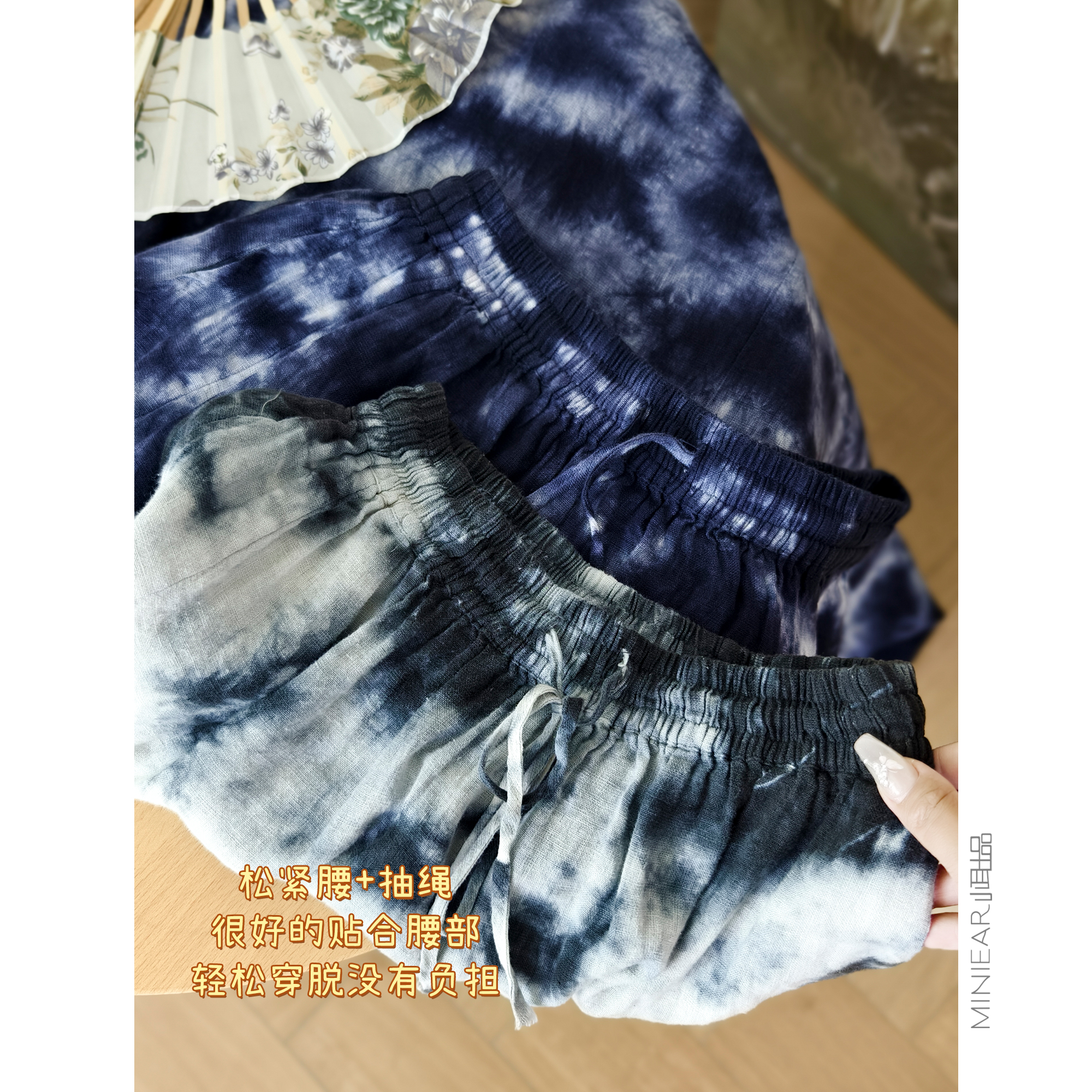 小耳出品 古法扎染工艺 100%亚麻/清爽不透 半身裙显瘦松紧腰长裙