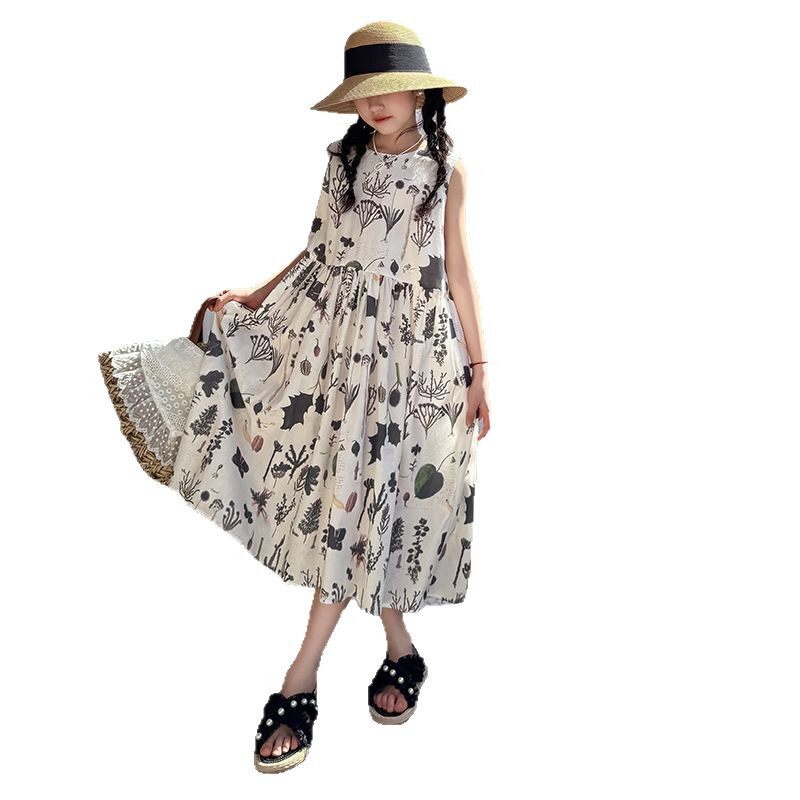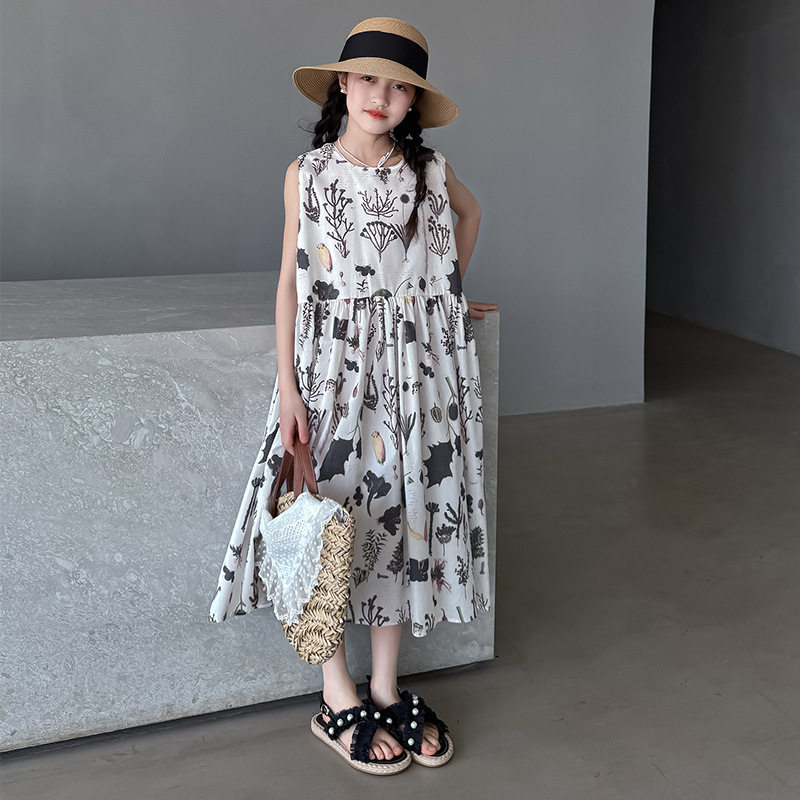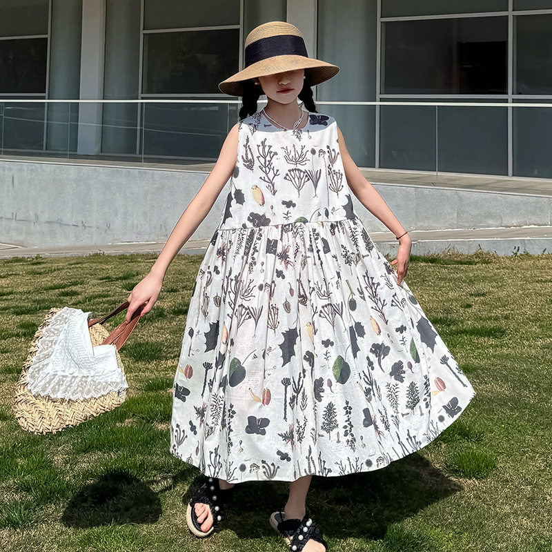 25韩版新款夏季连衣裙女大童亲子装无袖A字裙全棉女童公主大摆裙