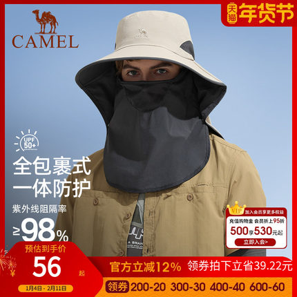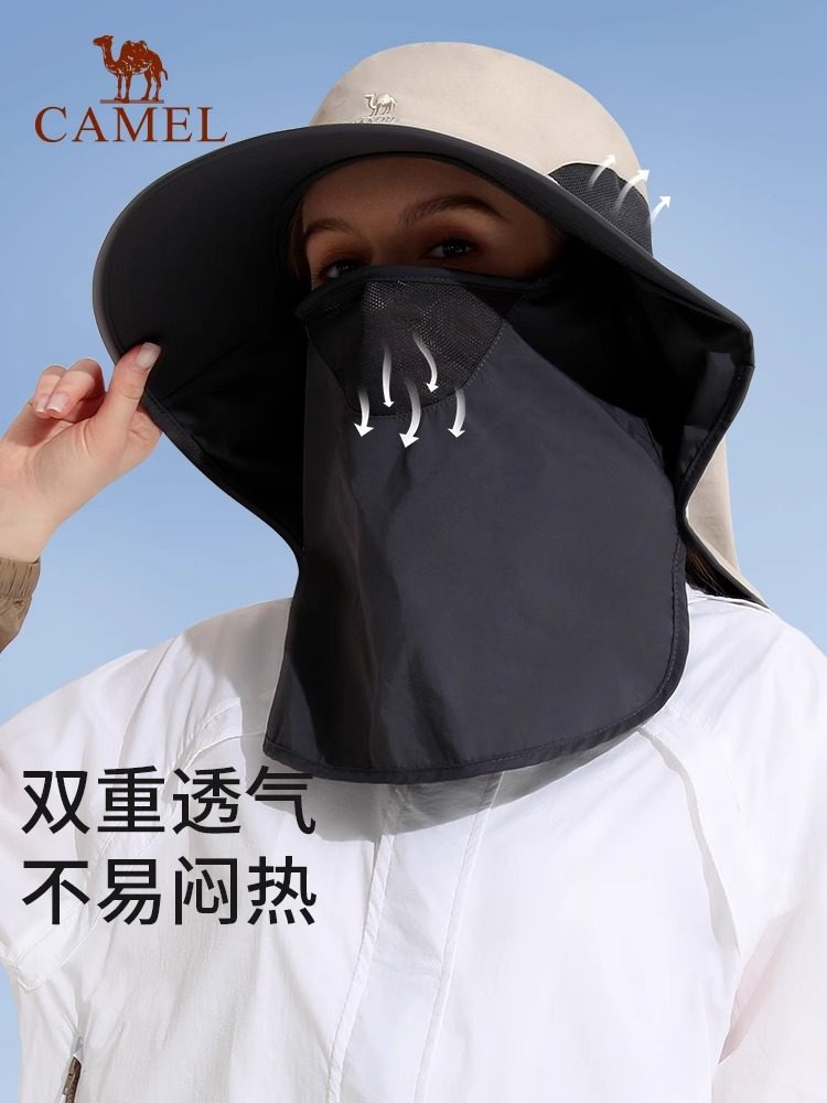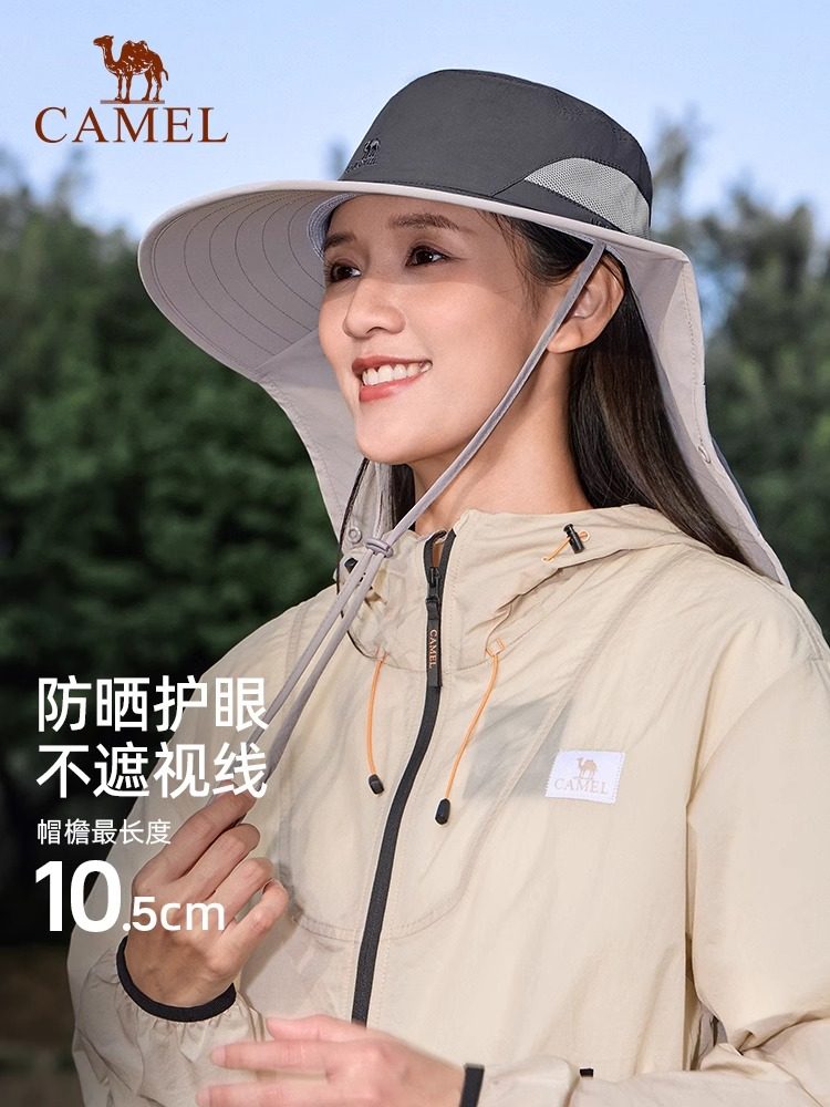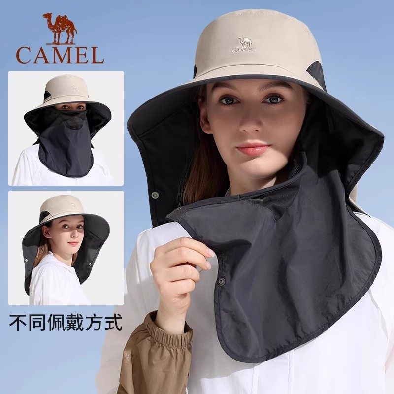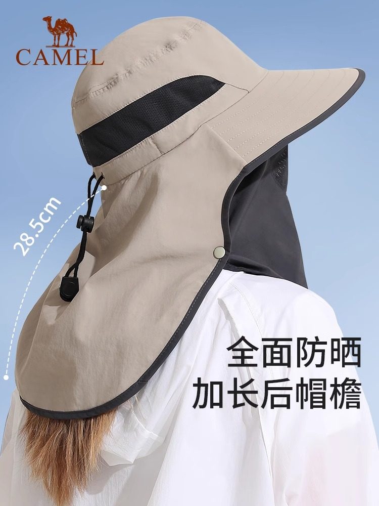骆驼户外防紫外线防晒帽子夏季男女全脸遮阳渔夫帽大帽檐钓鱼帽