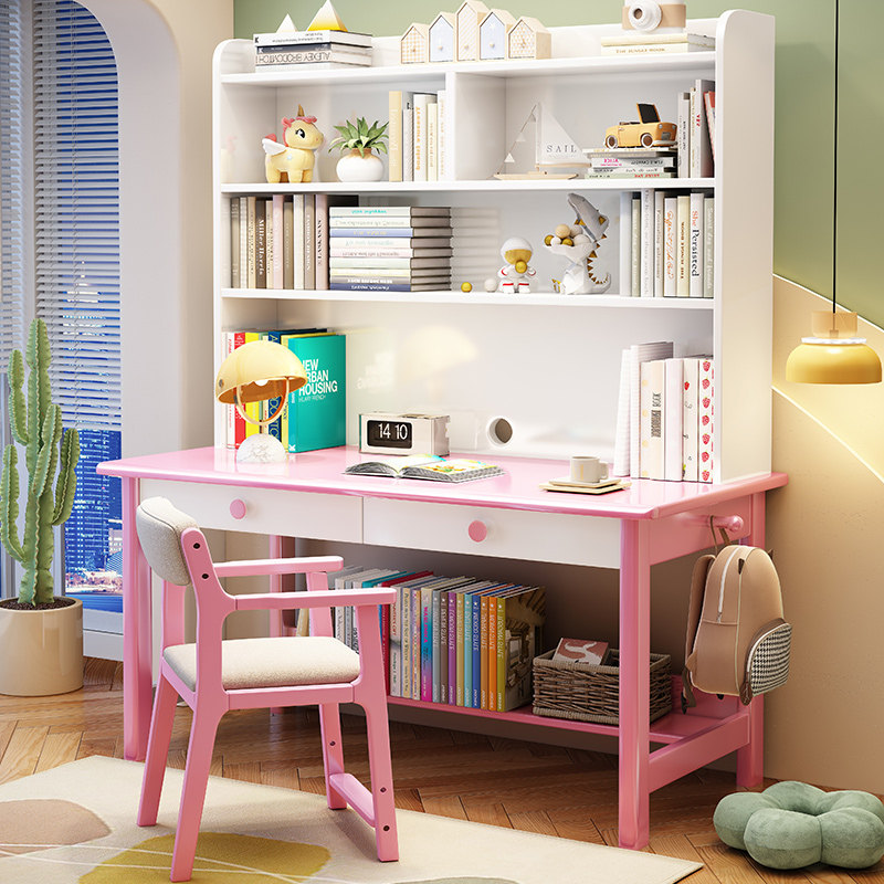 速发实木儿童学习桌书架桌体组合桌字桌卧室学生书写书房办公电脑