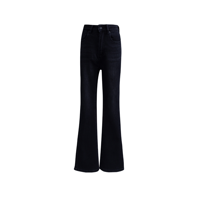 twosweet【短靴拍档】壹线面料高腰黑灰九分裤微喇修身弹力牛仔裤