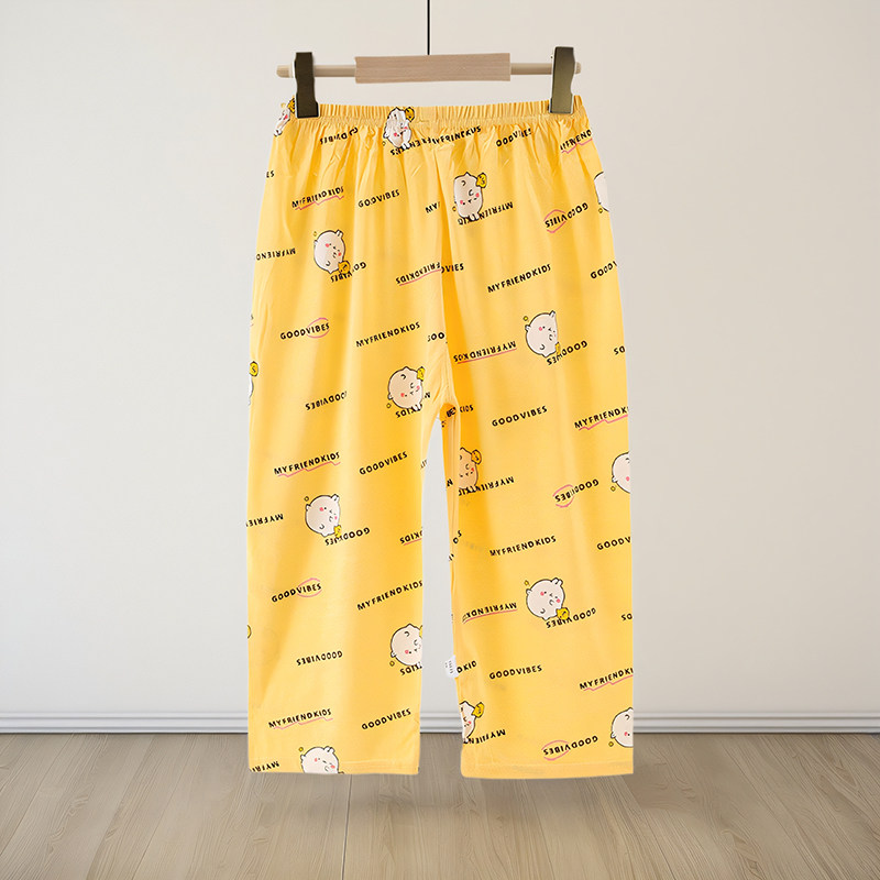 儿童睡裤7分裤男童女童中大童小孩夏季薄款宽松家居裤空调裤