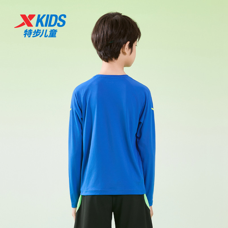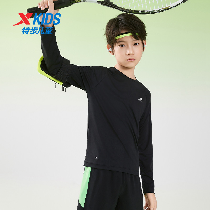 特步童装男童速干长袖T恤2024春秋新款儿童防晒上衣中大童运动长t