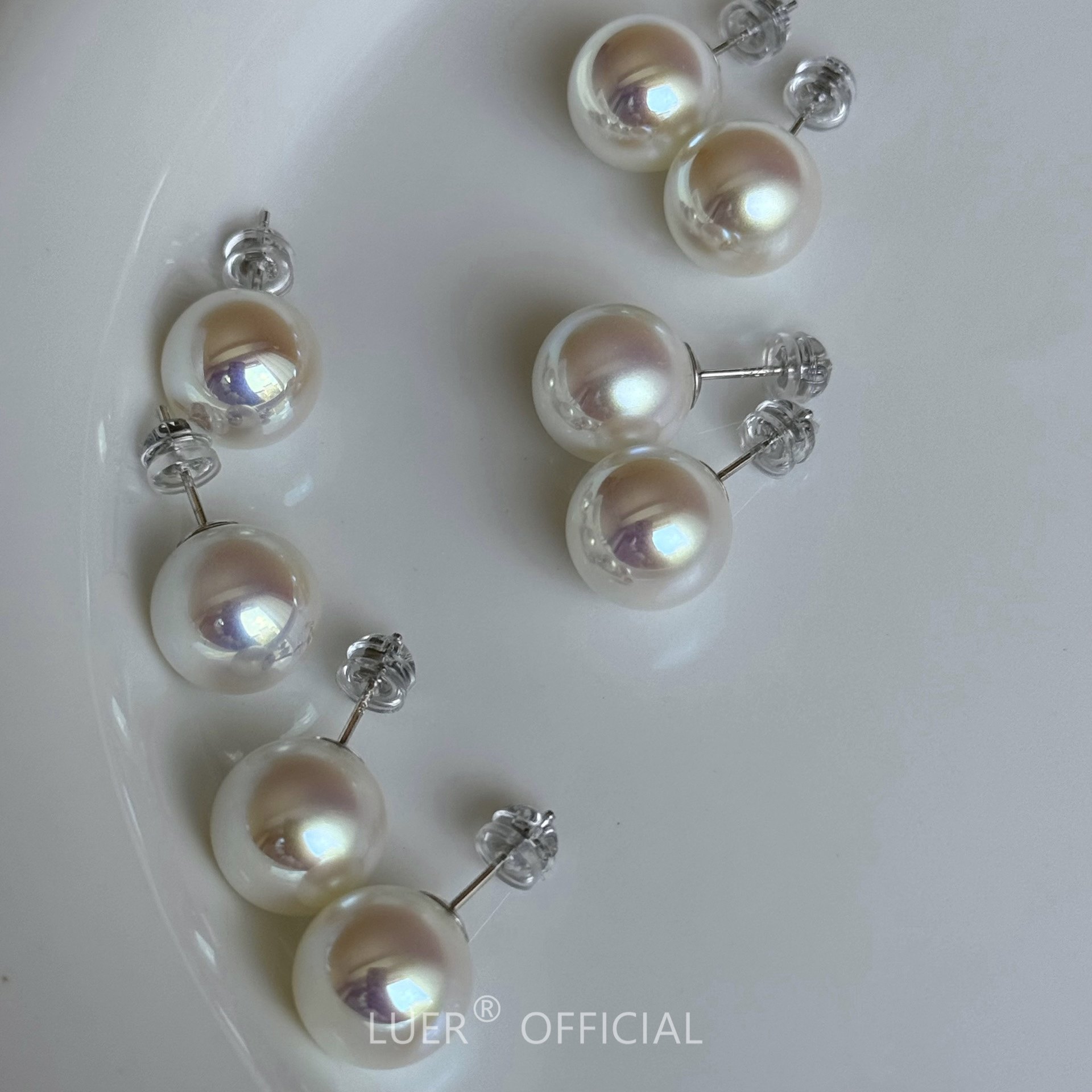 回馈!正圆极光人造akoya天女级珍珠耳钉自然伴彩通体纯银轻奢耳环