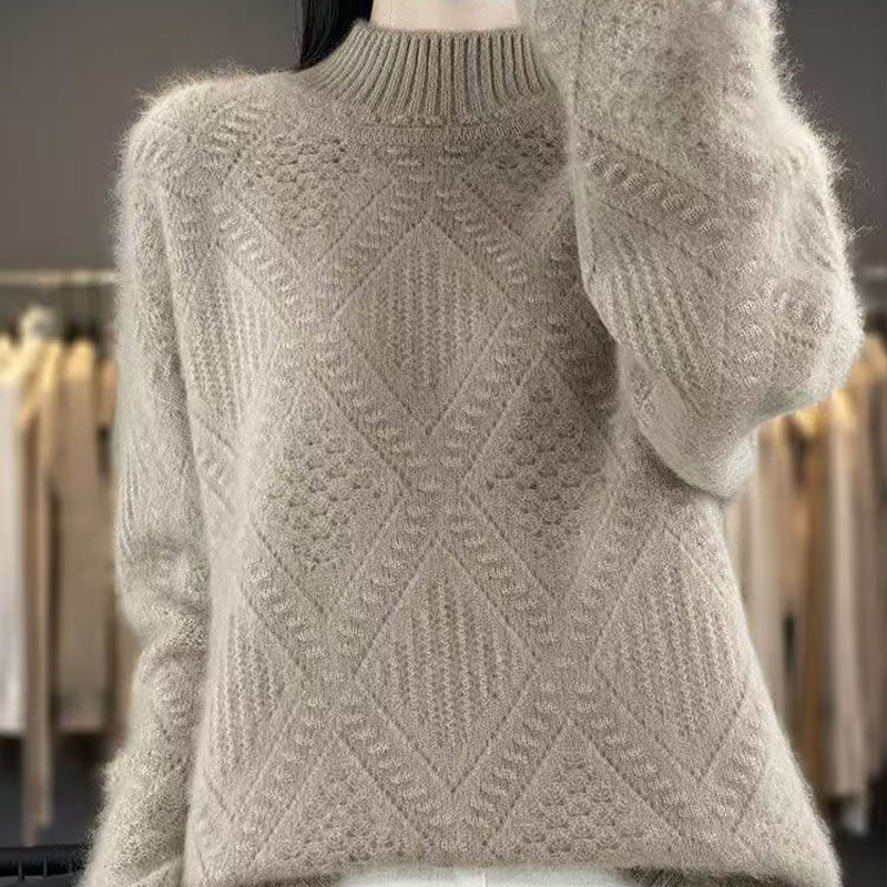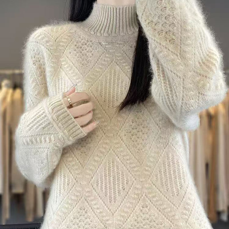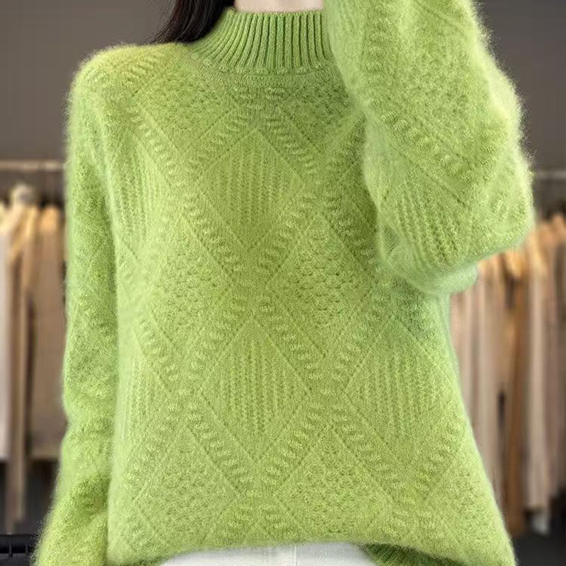 鄂尔多斯市温柔韩系风粉色半高领套头针织衫女加厚宽松毛衣打底衫
