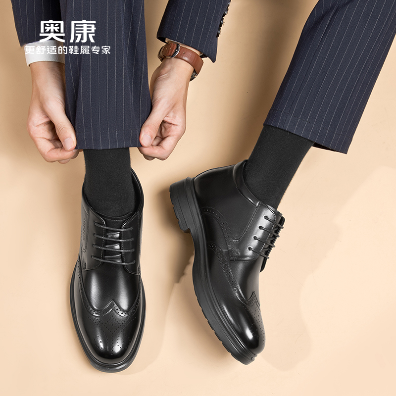 奥康 男鞋棉靴男冬季新款商务休闲棉皮鞋加绒保暖布洛克高帮鞋N