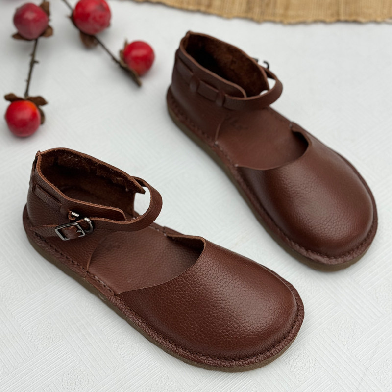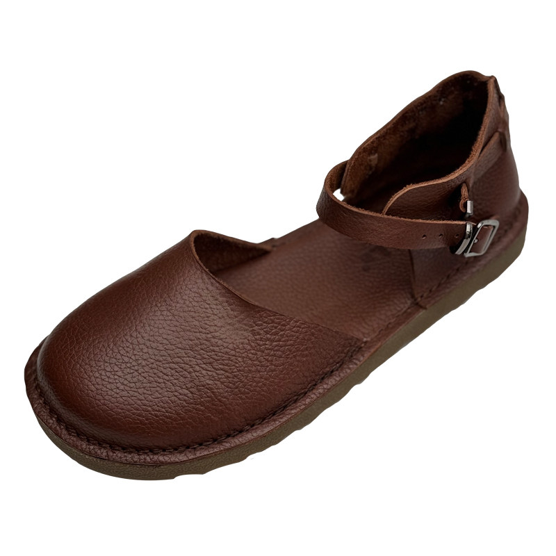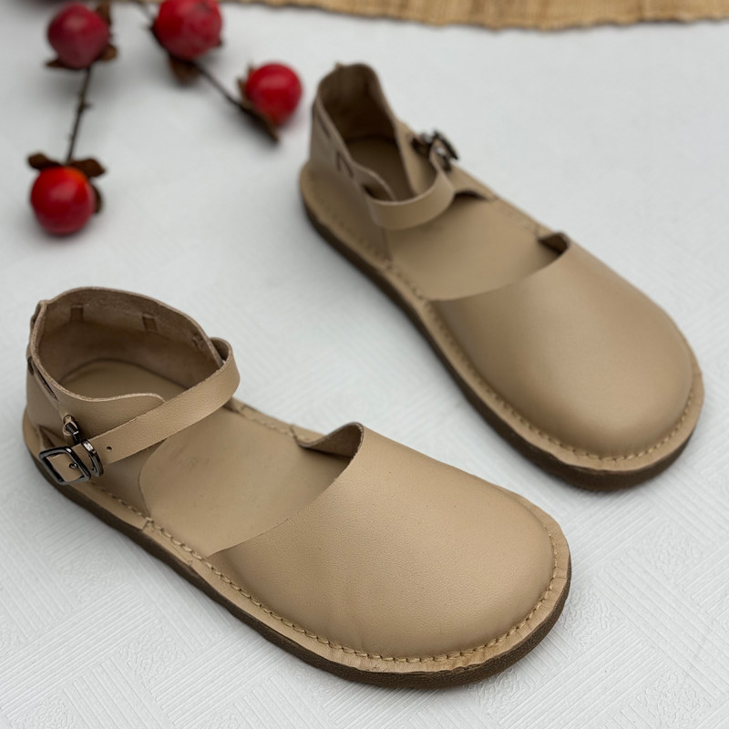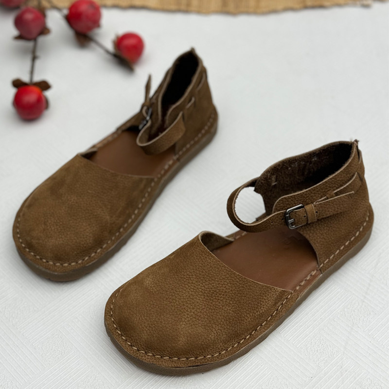 手工真皮复古妈妈凉鞋2025新款夏季女鞋头层牛皮鞋平底中老年鞋