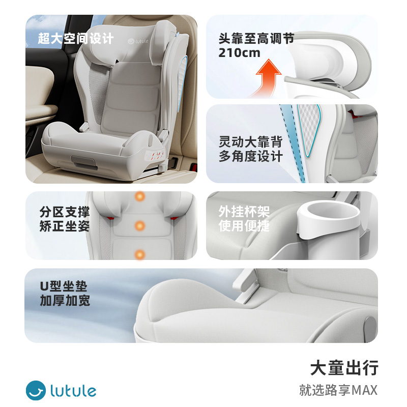 路途乐路享MAX儿童安全座椅3岁以上大童坐垫汽车载用3-12岁增高垫