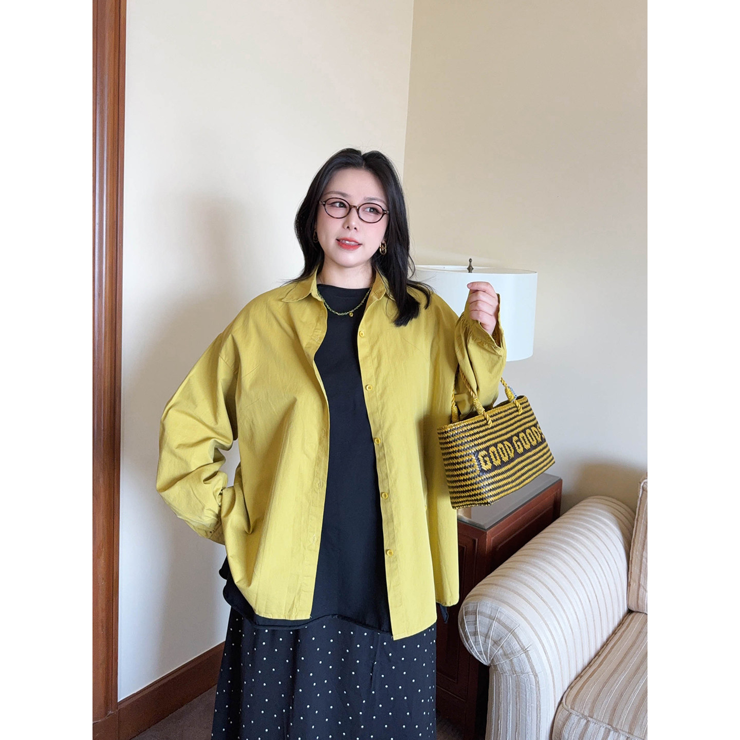 VOGANA戛纳家大码女装早春休闲简约慵懒松弛衬衣宽松显瘦收腰衬衫