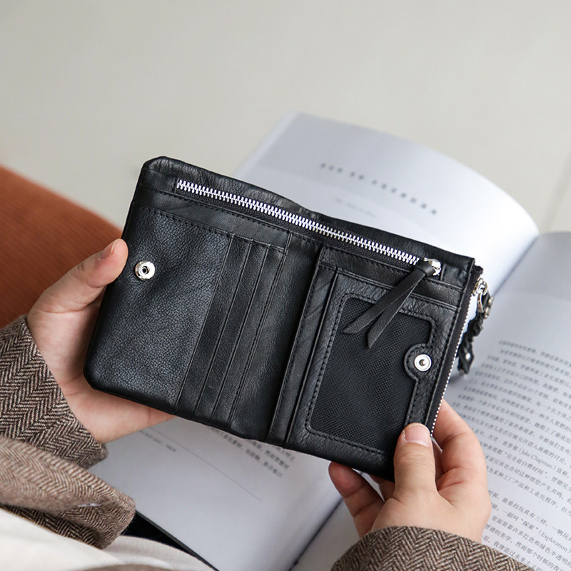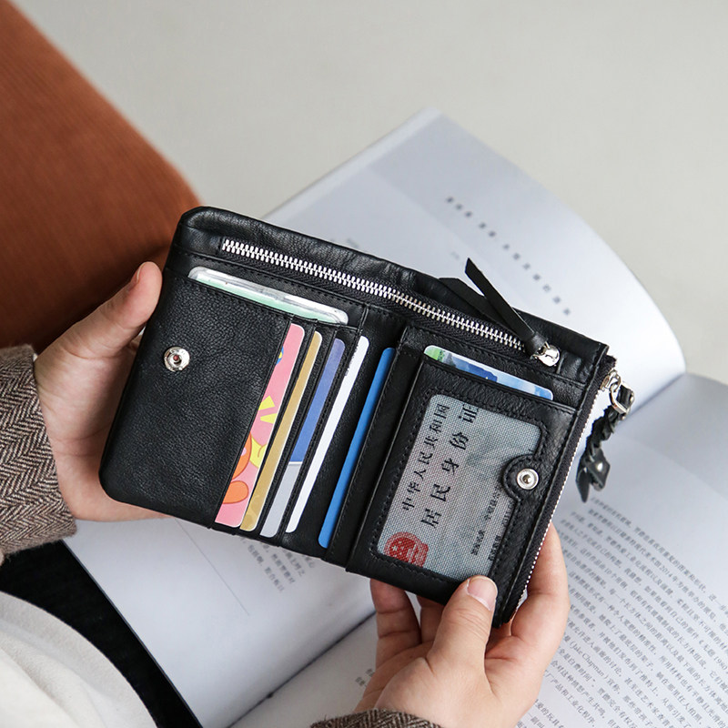 真皮复古短款钱包女款头层牛皮大容量驾驶证零钱软皮情侣男皮夹子