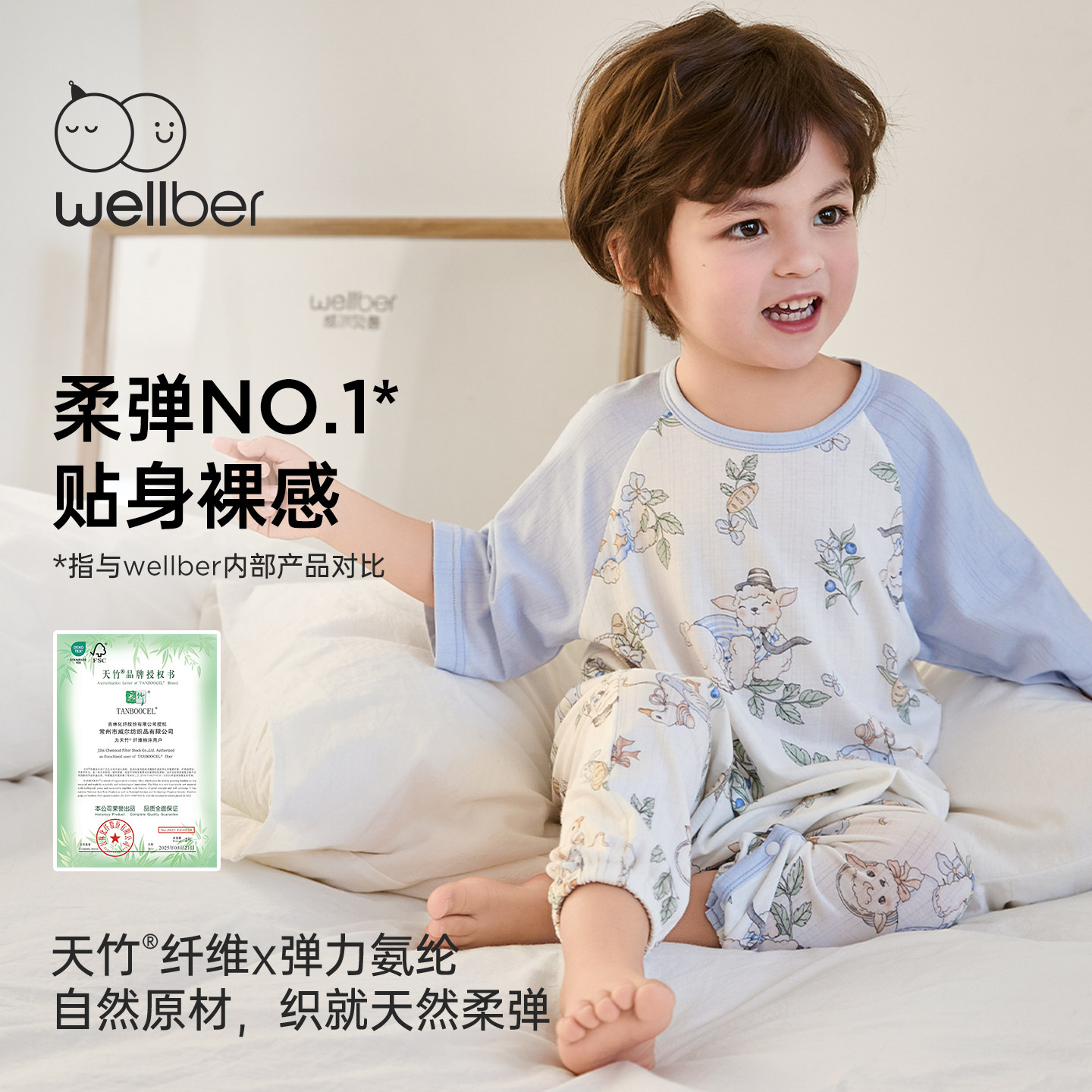 威尔贝鲁婴儿睡袋夏季2026新款宝宝七分袖分腿睡袋儿童睡衣桑蚕丝