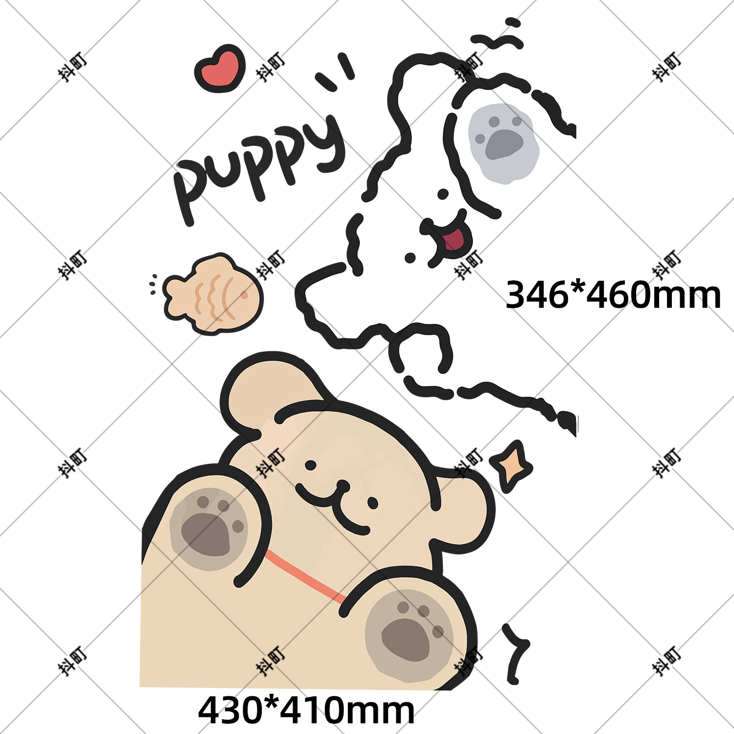适用于线条小狗静电贴免胶玻璃门贴防撞贴画奶茶店面门装饰贴画