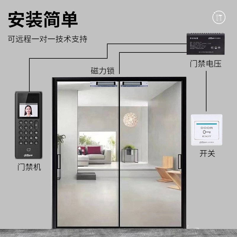 大华人脸识别门禁系统一体机办公室考勤机智能电磁锁门锁套餐30E