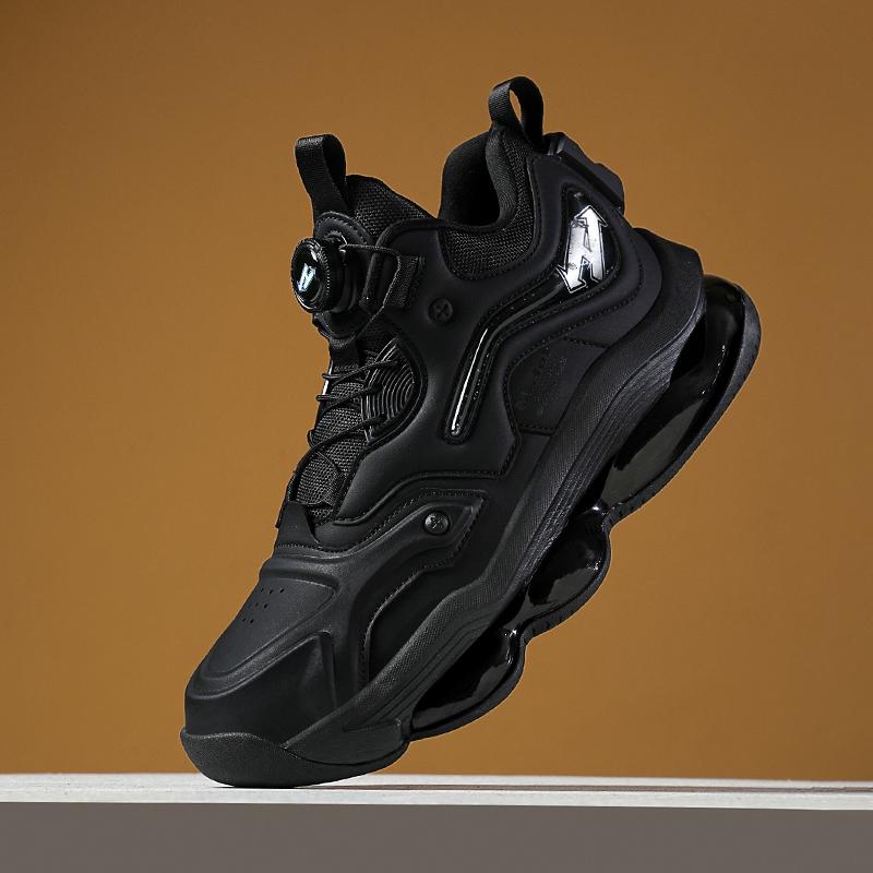 黑色运动鞋男秋冬新款休闲男鞋厚底减震气垫跑步鞋子上班通勤潮鞋