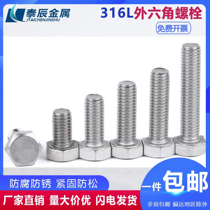 316L不锈钢A4-70外六角螺栓加长螺丝钉大全M6M8M10M12M14M16-M24