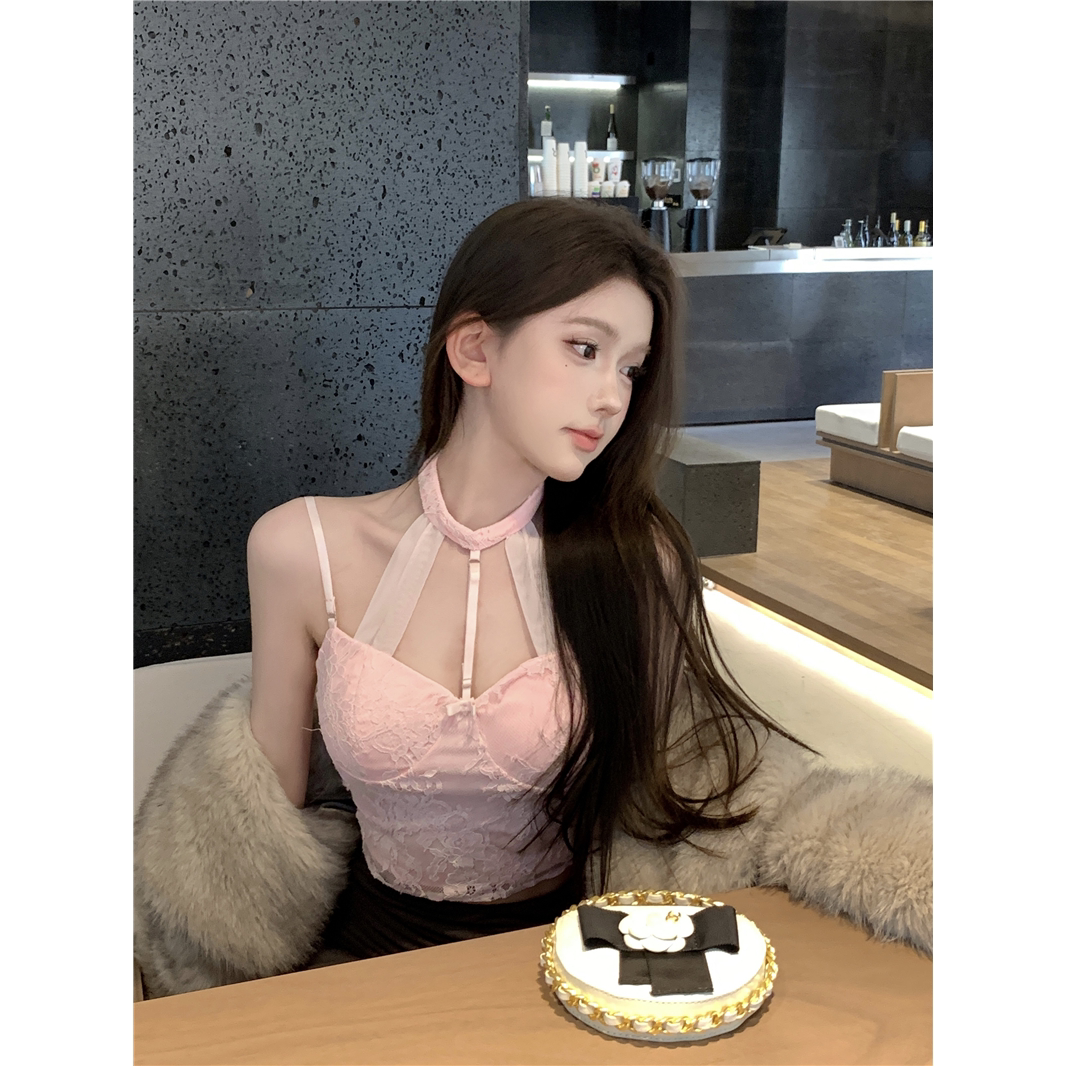 加小码150cm显高春装矮个子女装XXXS挂脖蕾丝纯欲风网纱内搭吊带
