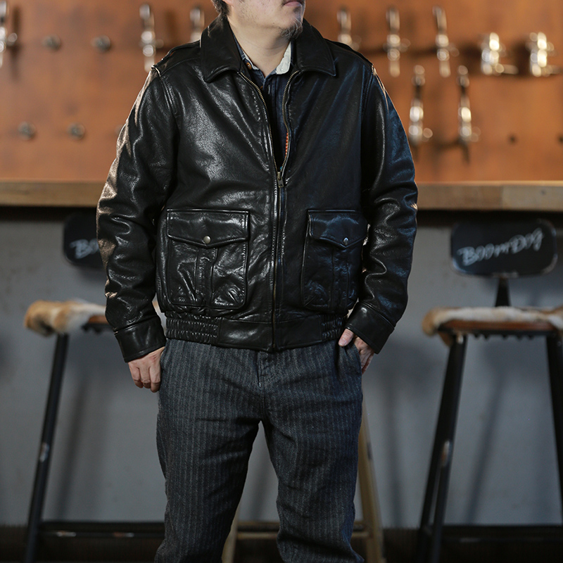 春秋新款男士短款休闲A2真皮皮衣翻领飞行服植鞣牛皮夹克
