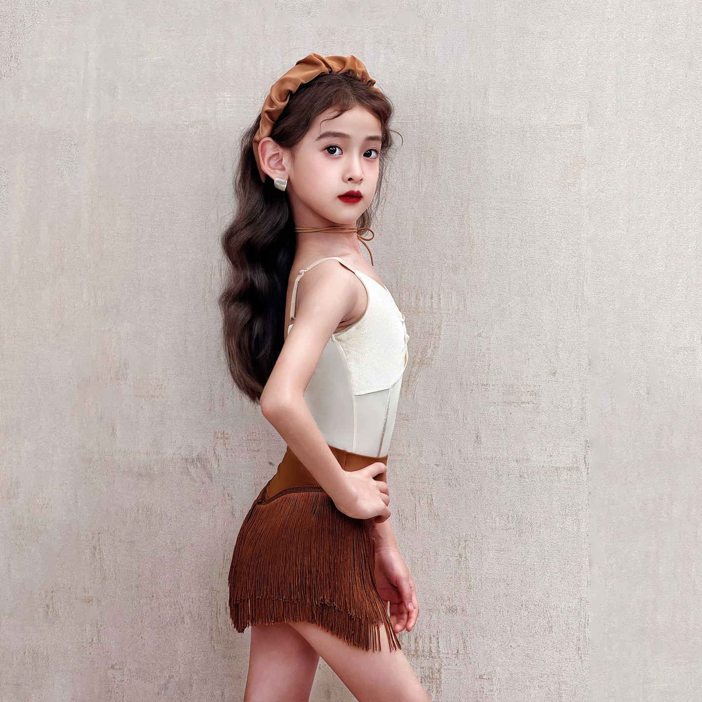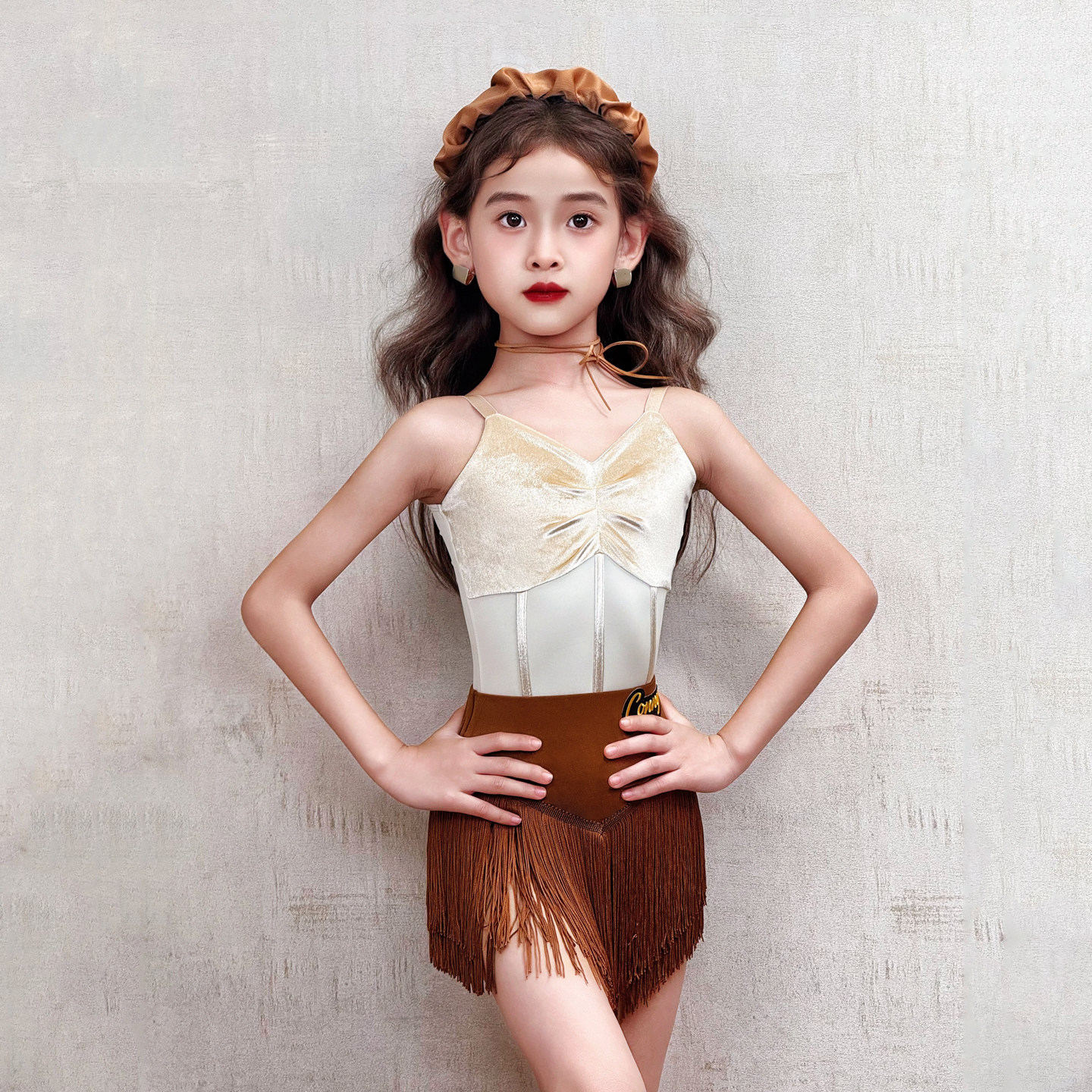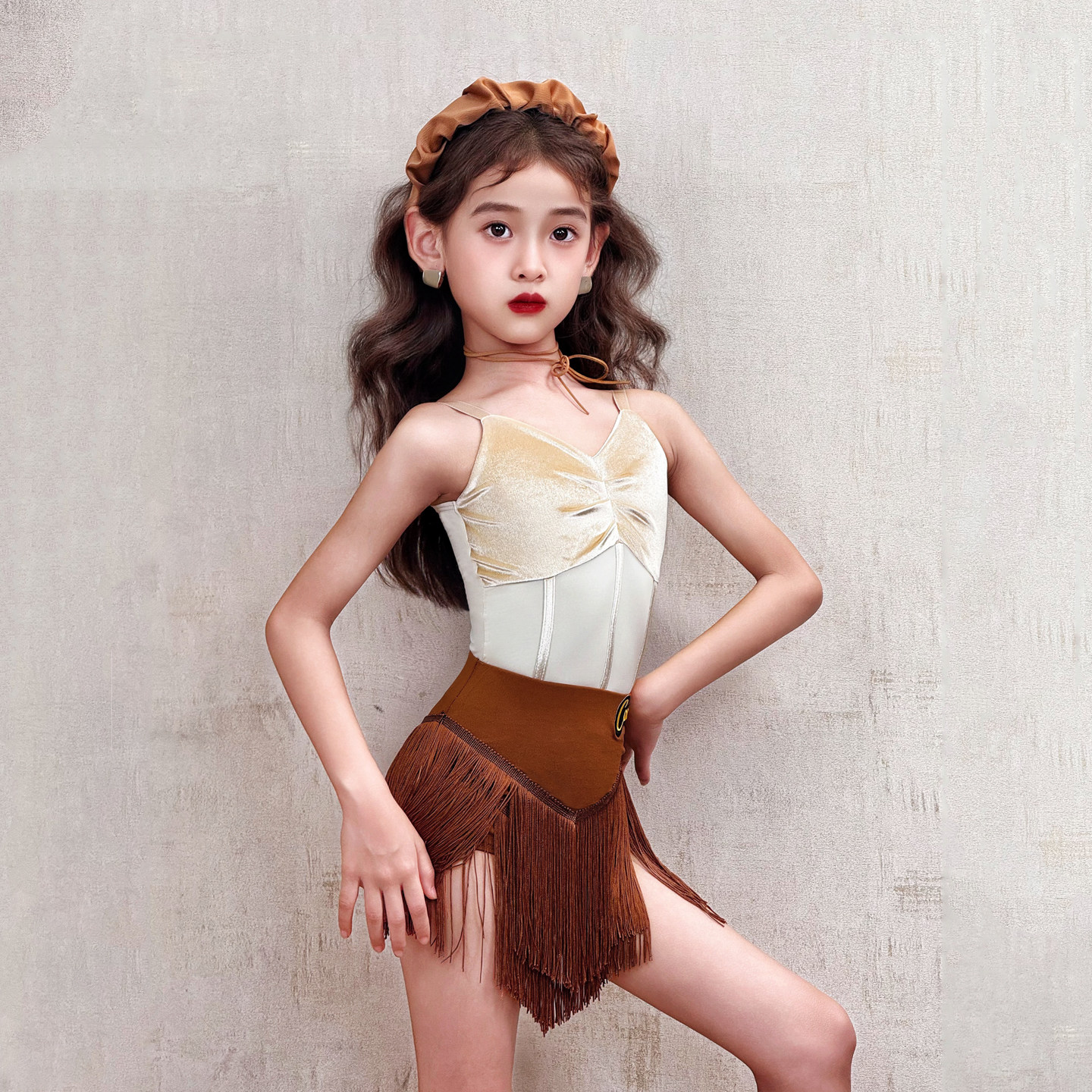 CONNY春夏季儿童拉丁舞服女跳舞蹈练功服吊带上衣流苏半身裙套装